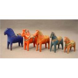 5 DALAHÄSTAR, TRADITONELL DEKOR I RÖTT OCH BLÅTT, 1900-1940, H10-15