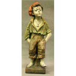 FIGUR, BEMÅLAT GIPS, ITALIENSK POJKE, C. 1900, H64 (TÅ MED LAGNING)