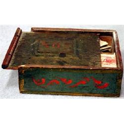 KRYDDLÅDA, BLÅMÅLAD, RÖD BLADDEKOR, DATERAD 1808, INREDE AV FACK, ALLMOGE, H5, B15, D16