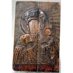 IKON, MARIA OCH JESUS, SKURET TRÄ, 16/1700-TAL, H22, B16 (SKADOR)