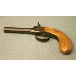 PISTOL, SVÄNGD TRÄKOLV, ÅTTKANTIG PIPA MED STÄMPEL, BELGIEN, L20