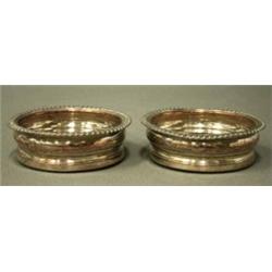 1 PAR COASTERS, PLÄTER, RUNDA MED GODRONNERAD KANT, TRÄBOTTEN, 1800-TAL, D15