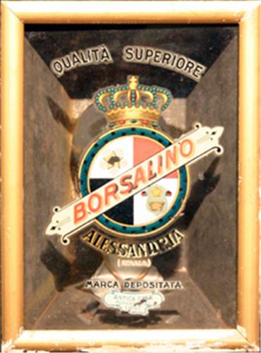 REKLAMSKYLT, PLÅT MED BELYSNING, GLASAD FRAMSIDA MED REKLAM FÖR "BORSALINO" (HÖGHATTAR), C. 1900, H30, B22