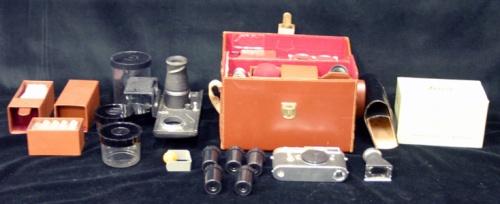 FOTOUTRUSTNING, KAMERAHUS "LEICA M2" MED 2 OBJEKTIV SAMT EN MÄNGD TILLBEHÖR
