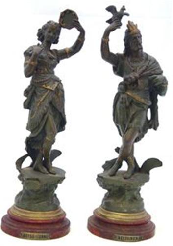 1 PAR FIGURINER, GRÖNPATINERAD METALL, ABYSSINIEN OCH ABYSSINIENNE, C. 1900, H43 (SMÄRRE SKADOR)