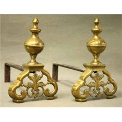 1 PAR ELDHUNDAR, MÄSSING, UNDERDEL MED GENOMBRUTEN BLADDEKOR, OVANDEL MED BALUSTERFORMAD KNOPP, 1800-TAL, H29, D37