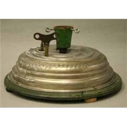 MEKANISK JULGRANSFOT MED SPELDOSA, PÅ RUNDN FOT AV PLÅT, TYSKLAND, C. 1900, D36