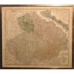 KARTA ÖVER BÖHMEN, KOLORERAD, TRYCKÅR 1748, 51X59