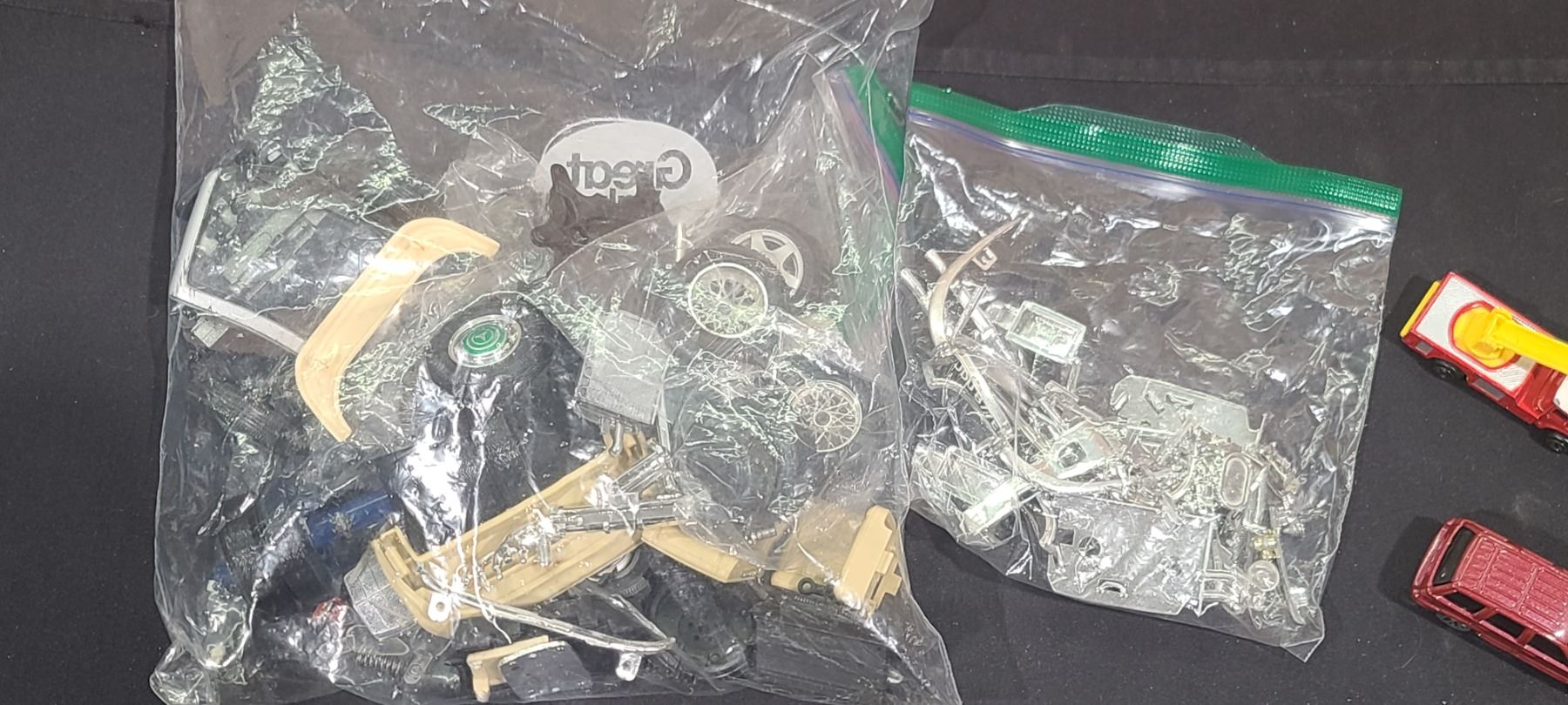 MISCELLANEOUS LOT LOT OF FOUR CARS, CAR MODEL PARTS AND DRESS UP GLASSES