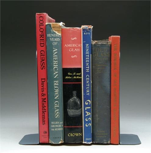 MISCELLANEOUS REFERENCE BOOKS. Lot consists of eight reference books on antique glass including "British Glass", "Early American Pattern Glass", "The Romance of Old Sandwich Glass", "Old Glass European and American", "19th Century Glass" by Revi, "American Glass" by McKearin, "Two Hundred Years of American Blown Glass" by McKearin and "Colored Glass" by Davis and Middlemas. CONDITION: Books have been used, but overall very good. Estate of Edwin Schiebel Sr. 5-60243