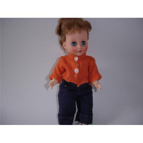 11 INCHES TALL IN ORGINAL CLOTHES. HARD PLASTIC.