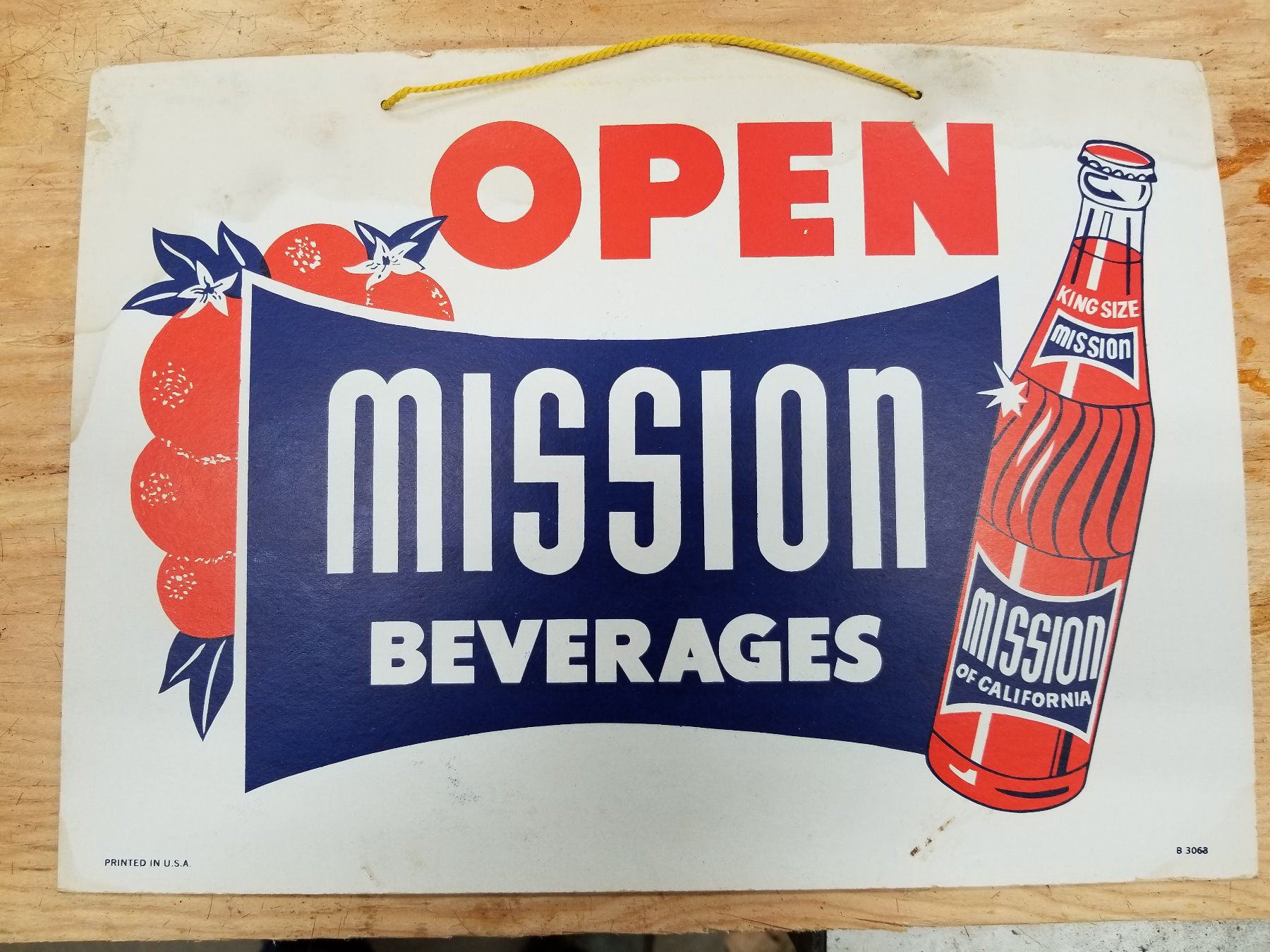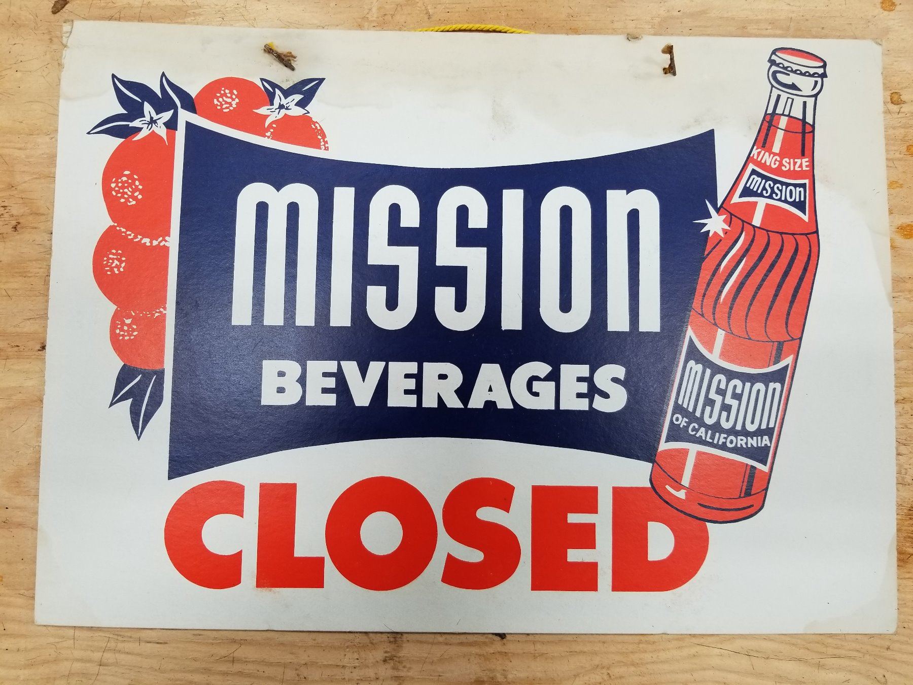 MISSION ORANGE OPEN/CLOSED DOOR SIGN 1950s CARDBOARD 10" BY 14"