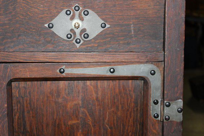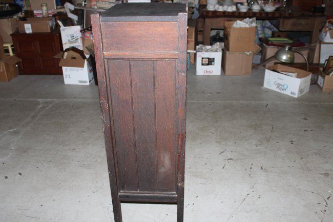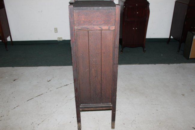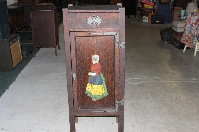MISSION STYLE ARTS AND CRAFTS MUSIC CABINET AND ONE DRAWER AND HAND-PAINTED LADY ON DOOR - NEAR MINT - 48 X 19 X 15