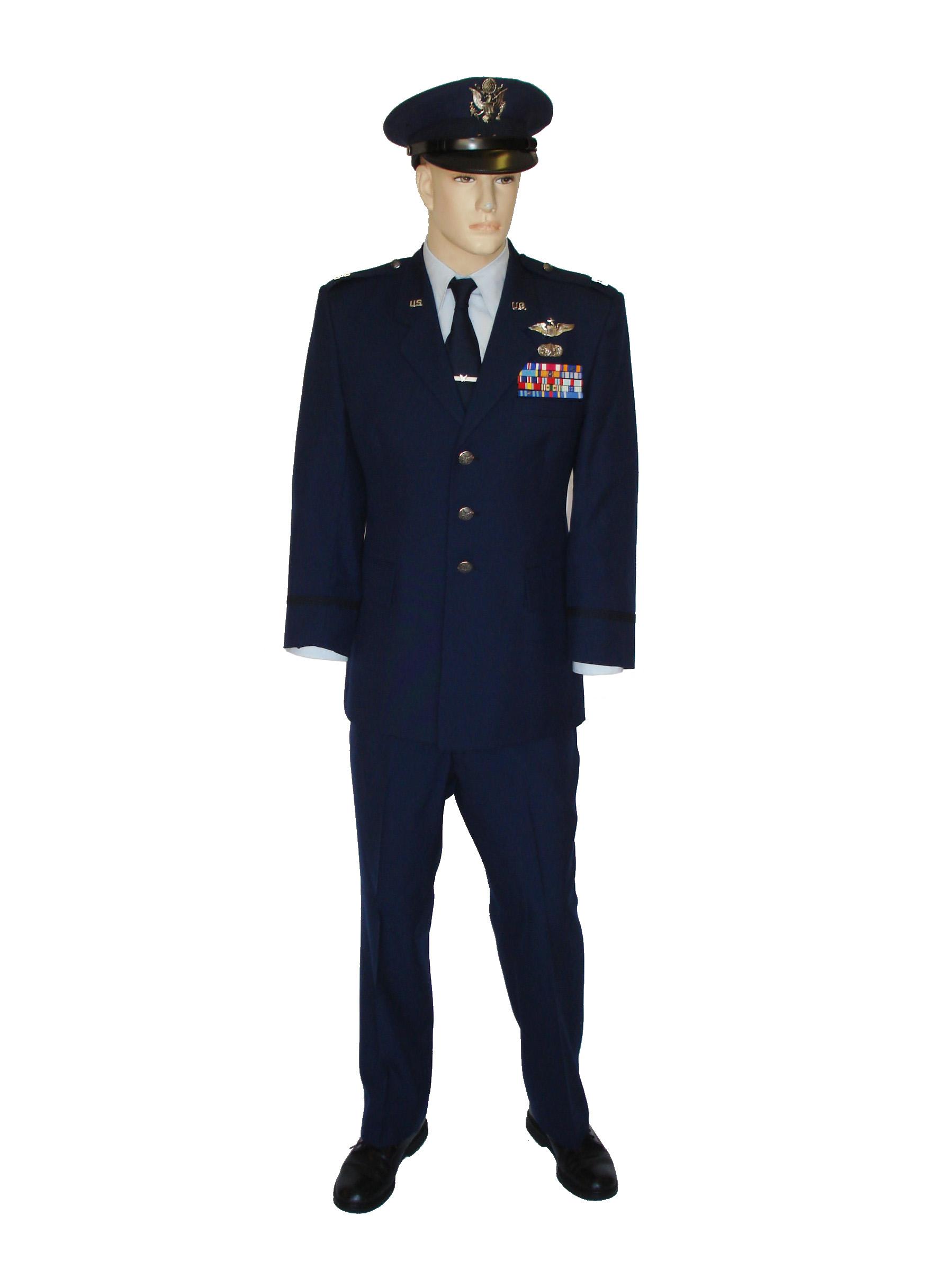 MISSION TO MARS (2000) - This Air Force Officer’s uniform was worn by the character Jim McConnell portrayed by actor Gary Sinise in Brian DePalma’s 2000 motion picture MISSION TO MARS starring Tim Robbins and Don Cheadle. The costume consists of a dark blue military tunic with matching pants, light blue shirt with shoulderboards, military issue dress belt, black dress shoes, officer’s cap, and tie with stainless steel clasp. Mr. Sinise appears briefly wearing the suit during the scene where McConnell is en route to Mars and watches a video of he and his deceased wife at a party with a group of friends as they screen footage of their wedding ceremony, at which McConnell wore his military dress outfit. The outfit is complete with the original insignia and ribbons that were used in the film and is in excellent screen worn condition. Accompanied by a letter of authenticity from the costume house.