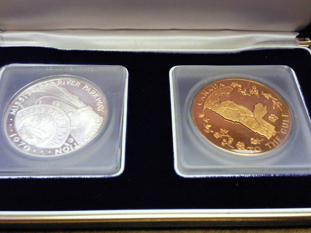 ISSUED IN 1970, 1 OF THEM IS 1 OZ OF .999 FINE SILVER IN CASE (AS SHOWN)