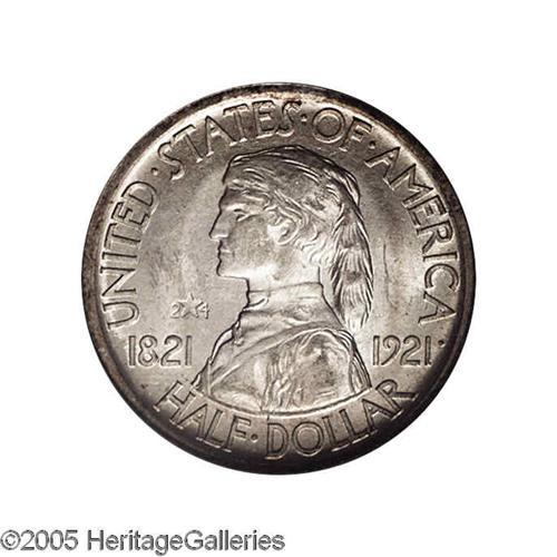 <B>1921<50C> Missouri 2x4 MS65 PCGS.</B></I> These half dollars are more officially known as the Missouri Centennial Half Dollars, and were intended to raise funds for the Centennial celebration in connection with the state fair held in the town of Sedalia. Much of the entire distribution of both varieties, totaling 20,428 coins, were mishandled or spent, thus high-grade survivors are few and far between. This lustrous piece is lightly toned and sharply struck. A few minor marks in the obverse fields are not at all offensive.<BR><I>From The Henry R. Luhrs Collection.</B></I>
