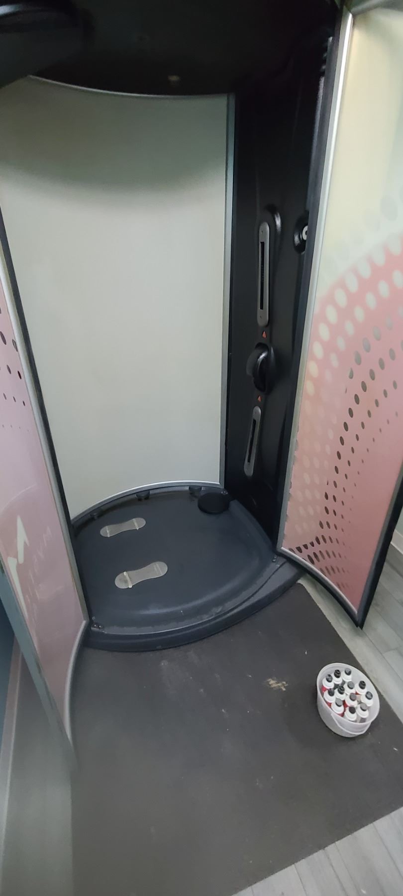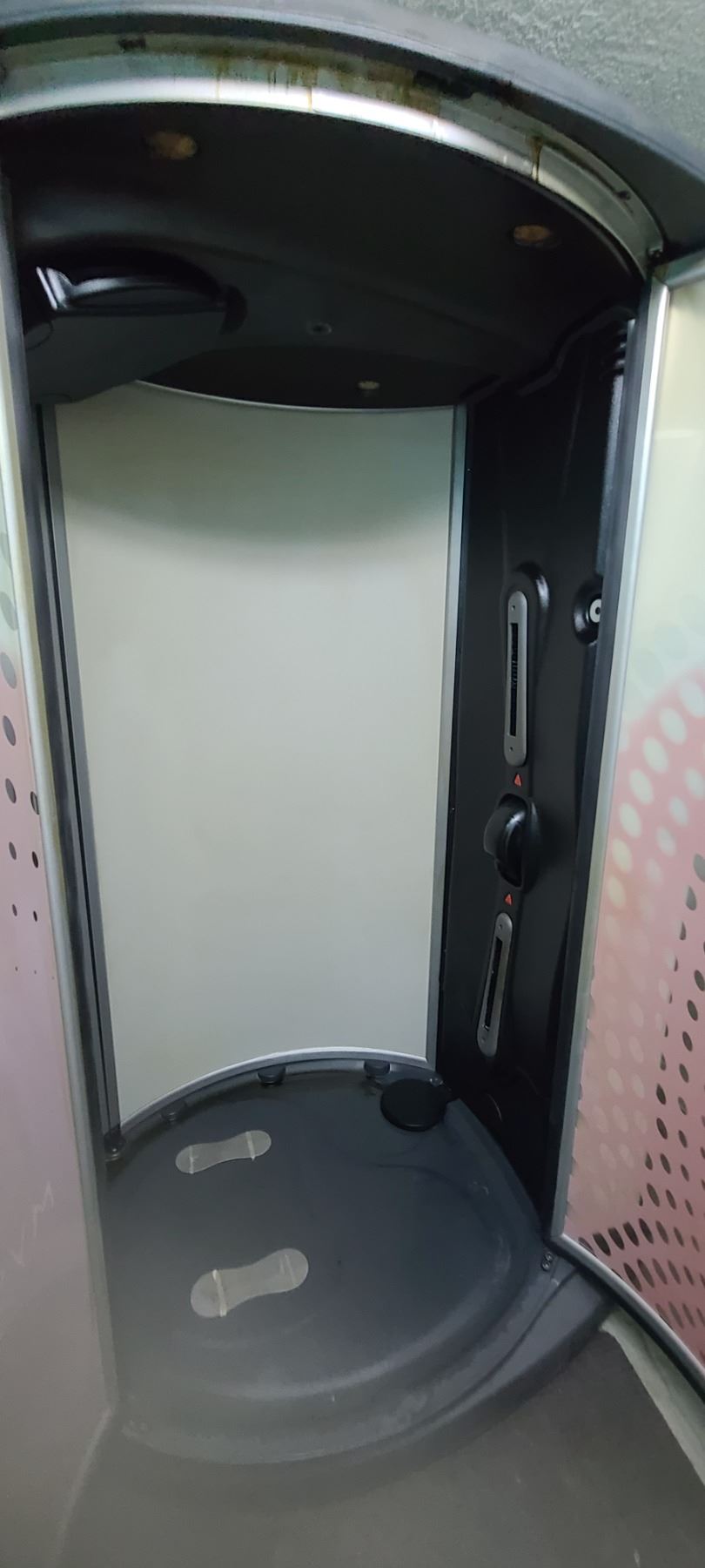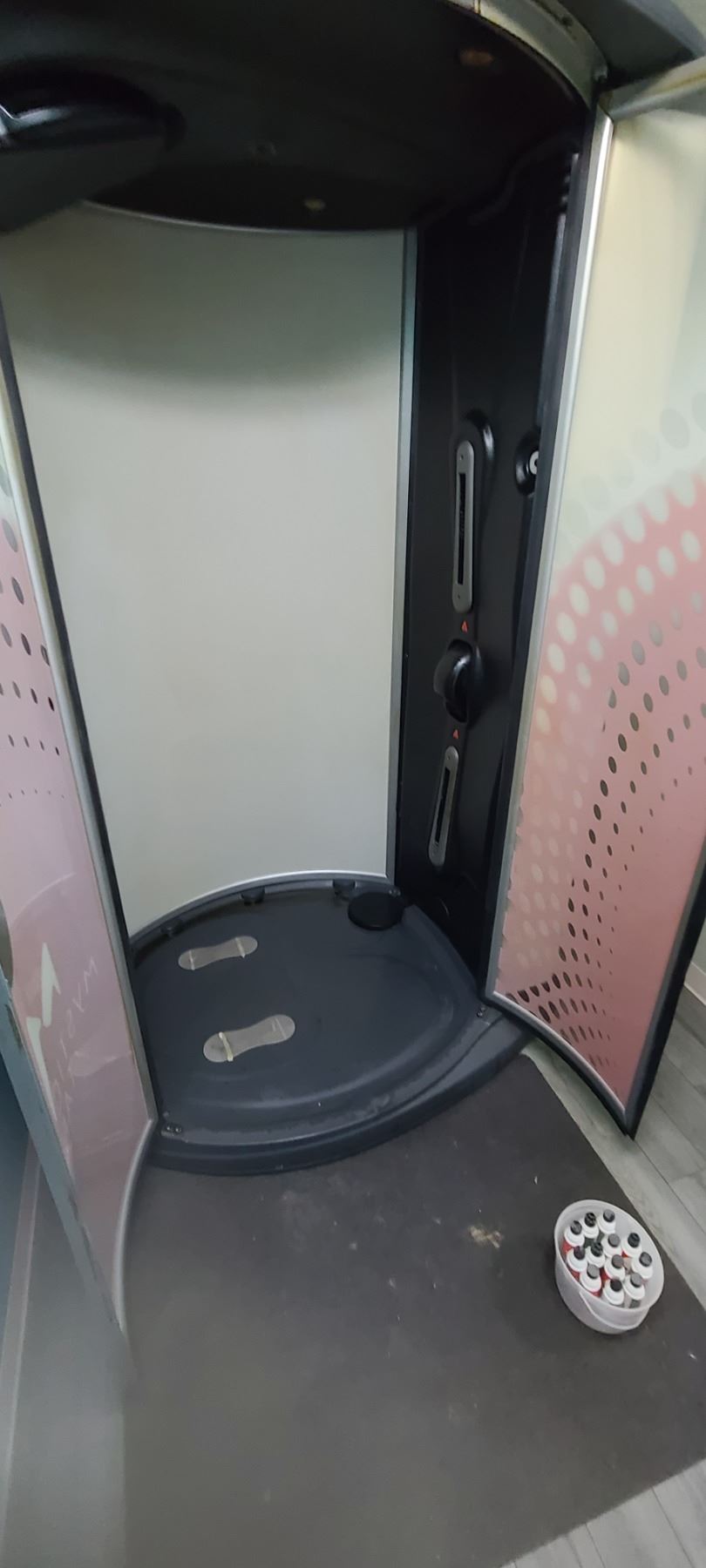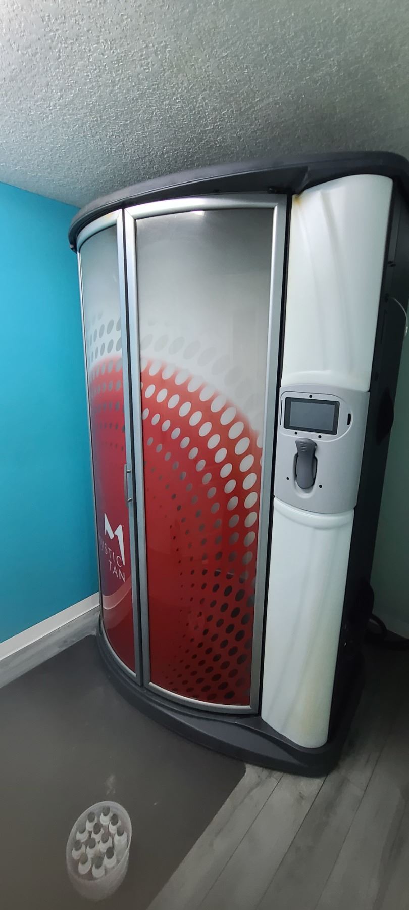 MISTIC TAN STAND UP SPRAY TANNING BOOTH - MODEL: MT6500 - COMES WITH THREE SPARE FILTER - HAS HEATING FEATURE FOR PUNTERS. COMES WITH SPARE HOSE AND 13 EXPIRED BOTTLES OF TSPRAY TAN. SIZE: 7'T X6'W X 4'T - BUYER MUST DISMATEL TO REMOVE