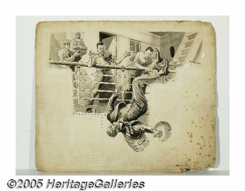 <B>MITCHELL (20th Century)</B></I> <BR>Original Magazine Illustration <BR>The Phantom Fleet by E. Phillips Oppenheim, 1934 <BR>Caption: 'Knifed first, and thrown overboard. There were three of them in it. They had been waiting for a chance all the way from New York.'<BR>Ink on board <BR>16in. x 20in. (sight size) <BR>Signed upper right: 'Mitchell' <BR><BR><Keywords: ink, pulp, drawing>
