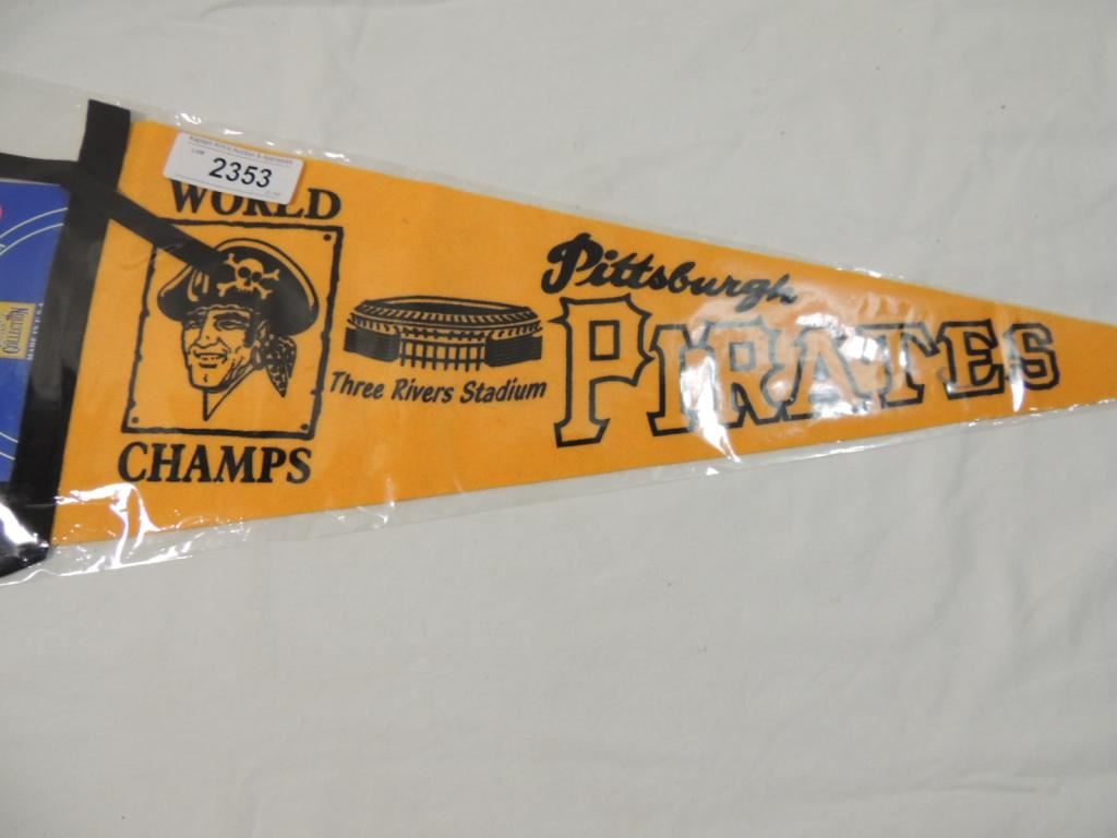 FELT PENNANT BANNER WORLD CAMPS PITTSBURGH PIRATES THREE RIVERS STADIUM AS SHOWN SEE PHOTO FOR MORE DETAILS.
