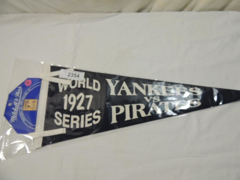 1927 WORLD SERIES MITCHELL & NESS YANKEES & PIRATES PENNANT BANNER FELT BANNER DECORATIVE COLLECTIBLE AS SHOWN SEE PHOTO FOR MORE DETAILS.