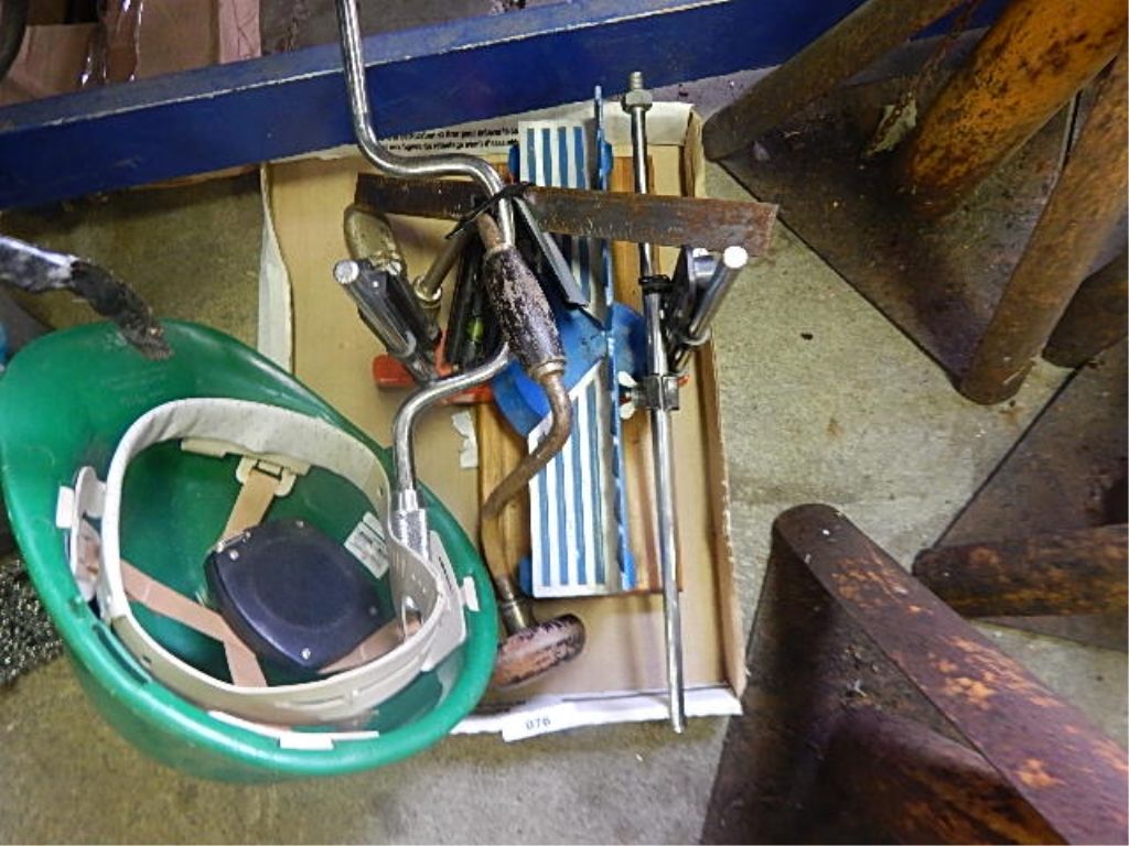 MITRE BOX, SQUARE, HARD HAT AND MISC