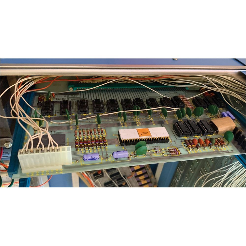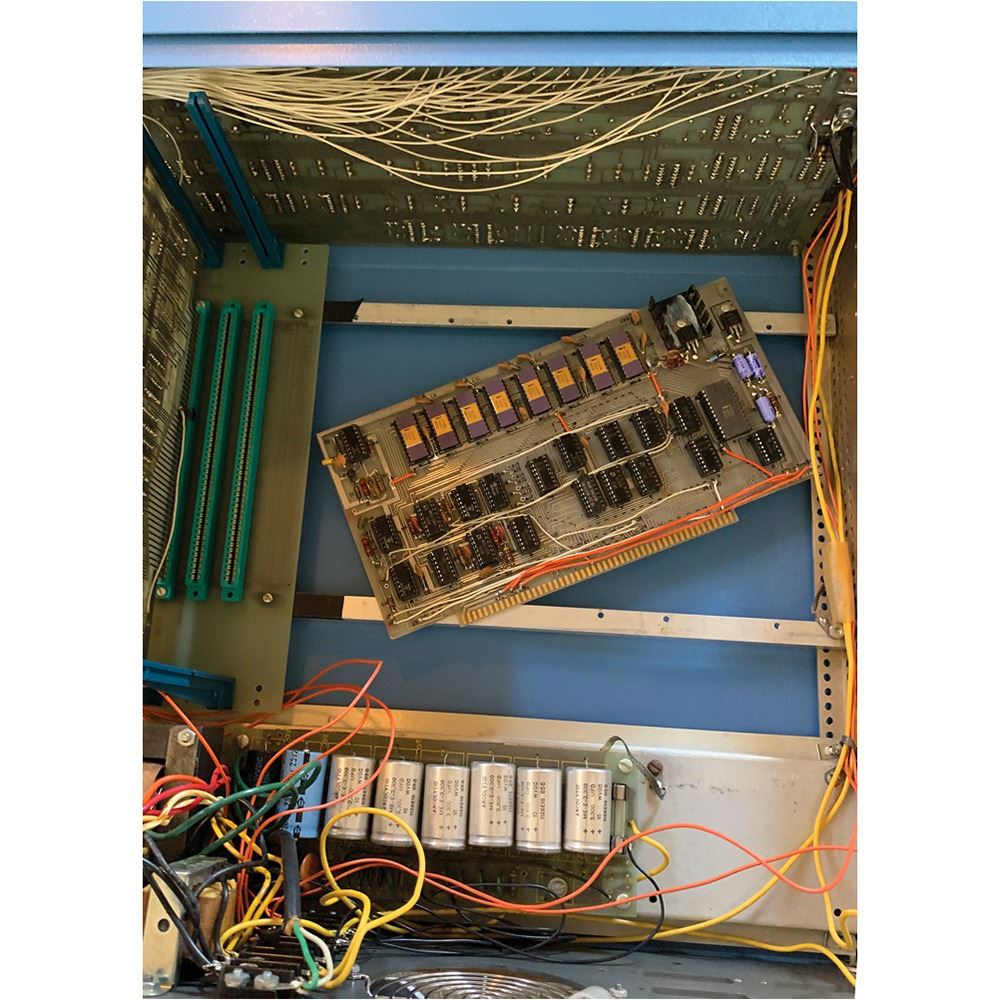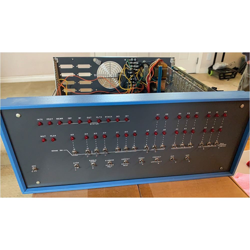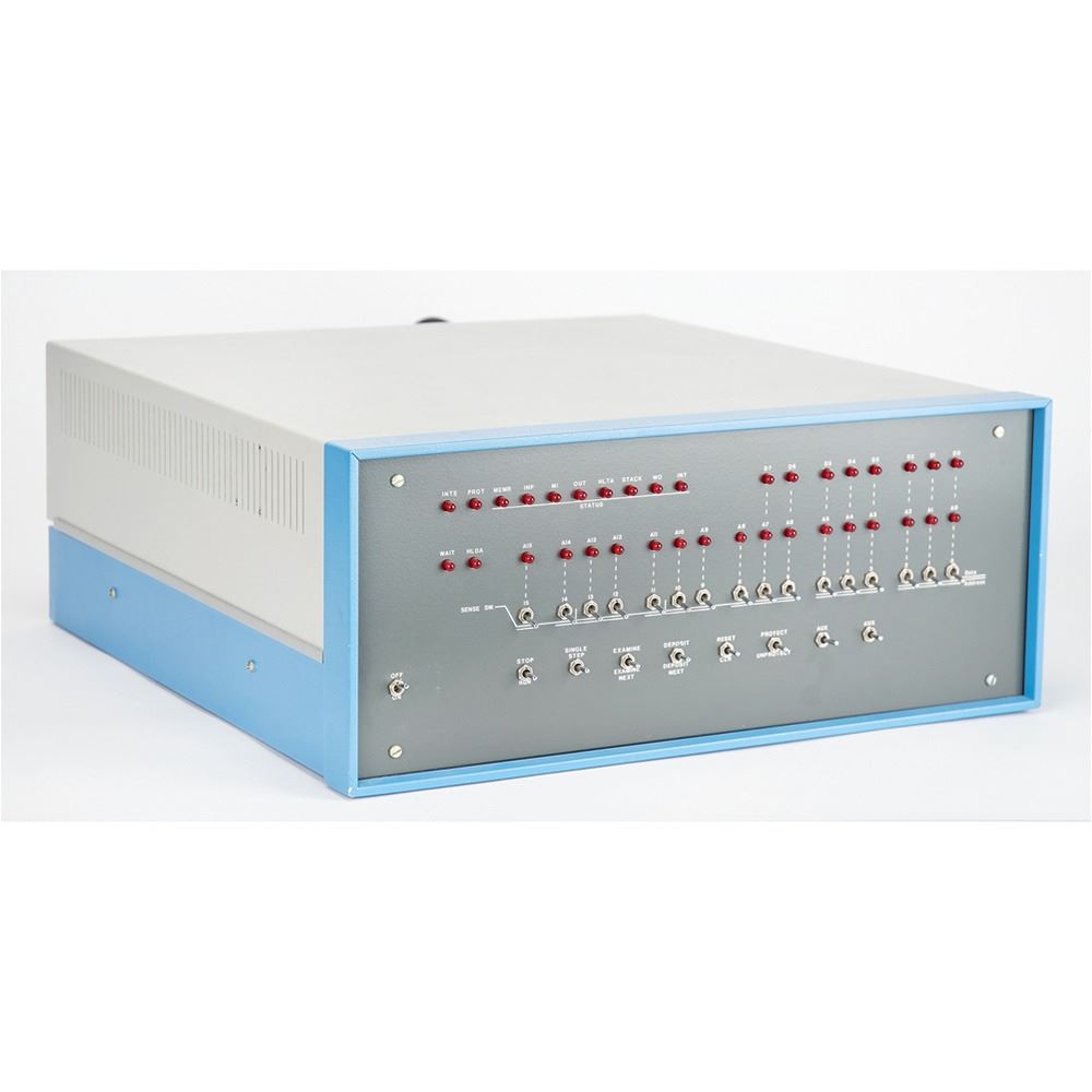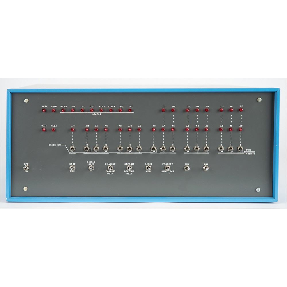 MITS Altair 8800 computer, serial no. 222514K, complete with its original white ceramic and gold Intel 8080 CPU (marked "C8080-8 / N6162"). The rear panel bears the affixed MITS, Inc. 'Creative Electronics' serial number label. Often credited with igniting the 'microcomputer revolution,' the Altair 8800 was the first commercially successful personal computer. Interest in it grew after it was featured on the cover of the 1975 issue of Popular Electronics, and it was sold by mail order as both a hobbyist kit and as a fully assembled unit. When Bill Gates and Paul Allen read about the Altair in Popular Electronics, they saw the opportunity to start their own computer software company and developed Altair BASIC—the very first product created by 'Micro-Soft.'