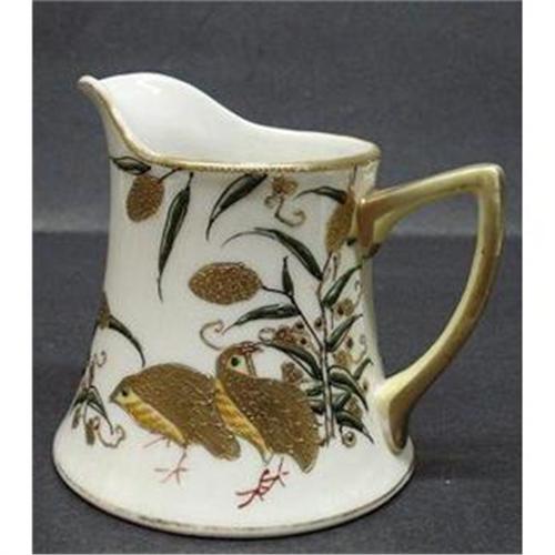 GORGEOUS ANTIQUE JUG,MADE BY MITSU - BPSHI - CHINA WARE - JAPAN,EXQUISITE HAND DECORATED ARTISTIC WORK DONE BY HAND IN GOLD AND BLACK ENAMEL, AMAZING DETAIL AND QUALITY - as per images, IT STANDS 4" HIGH, EXCELLENT CONDITION,GOLD IS THIN ON THE SPOUT AND HANDLE BUT STILL VERY GOOD, US BUYER TO PAY 7.00 FOR SHIPPING PLUS INSURANCE.THANKS.