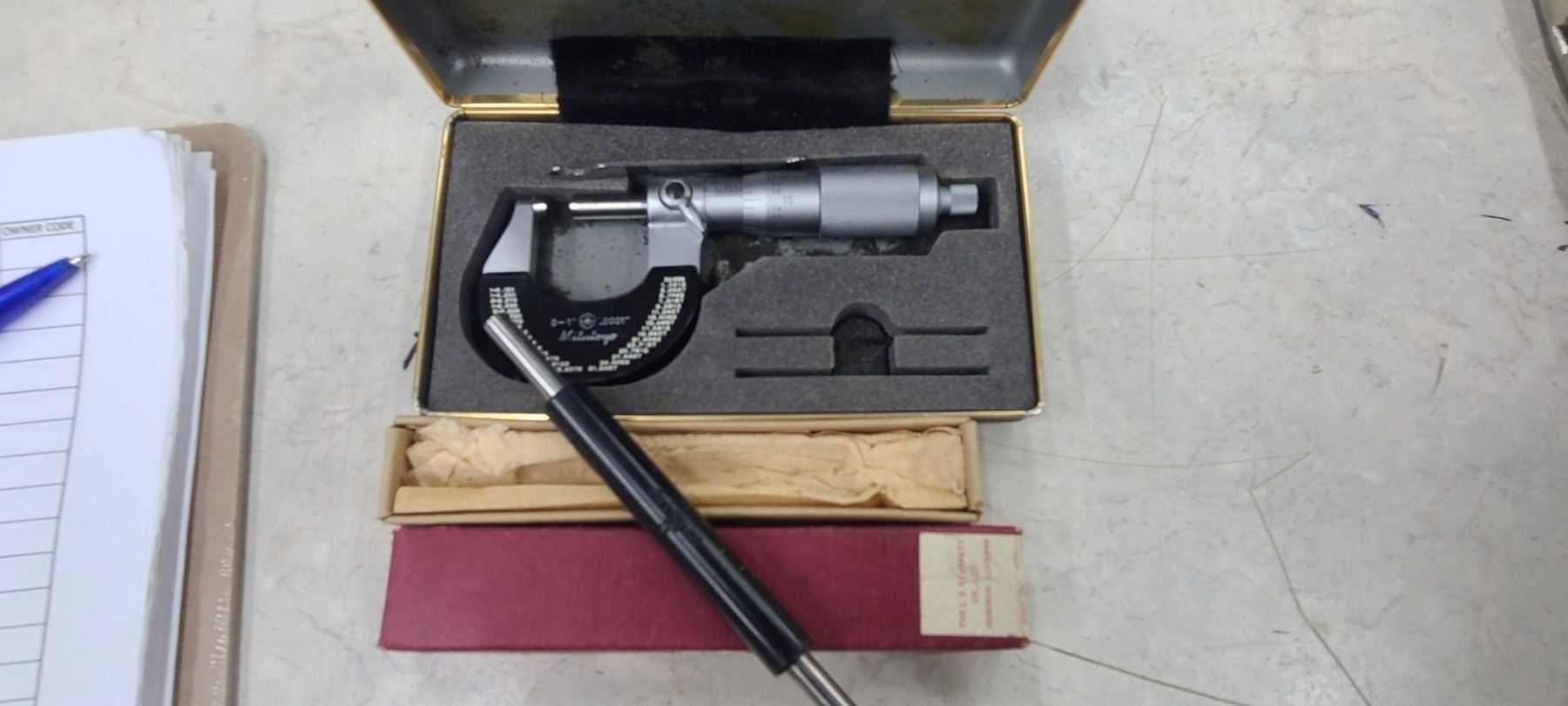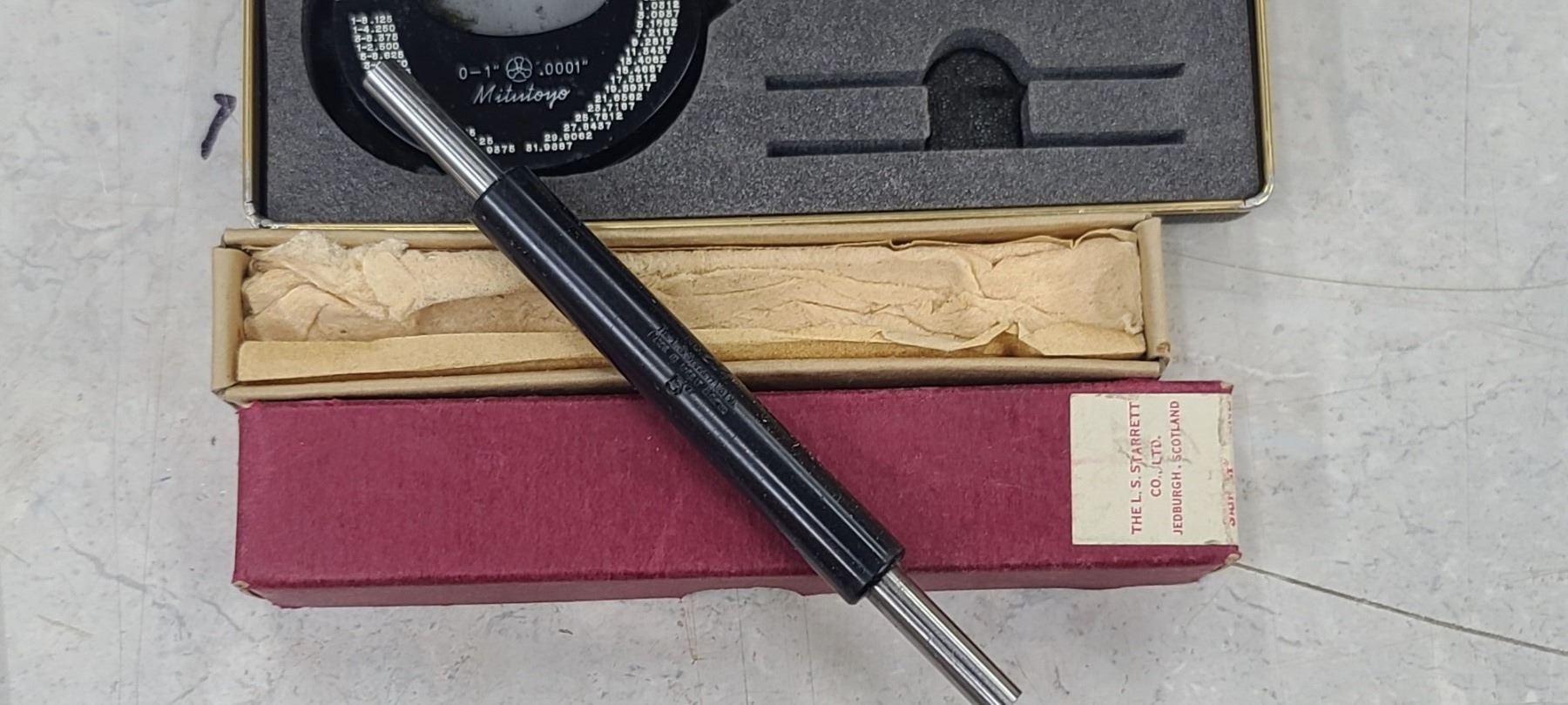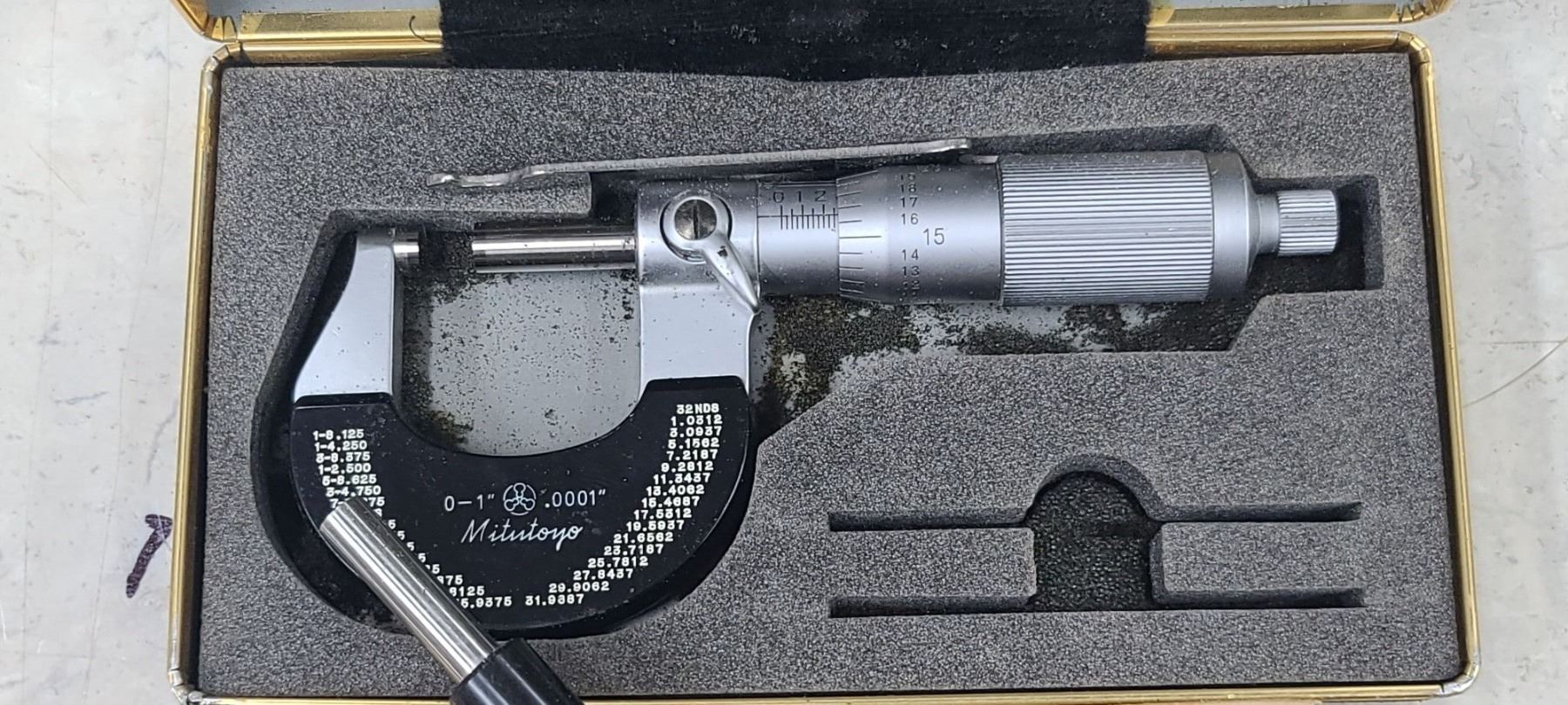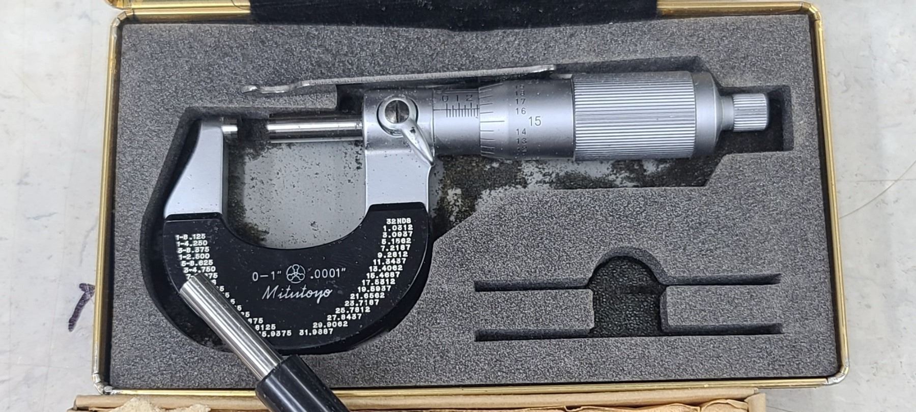 MITUTOYO MICROMETER WITH VERNIER SCALE 0"-1" .0001" AND NUMBER 2355" MEASURING ROD