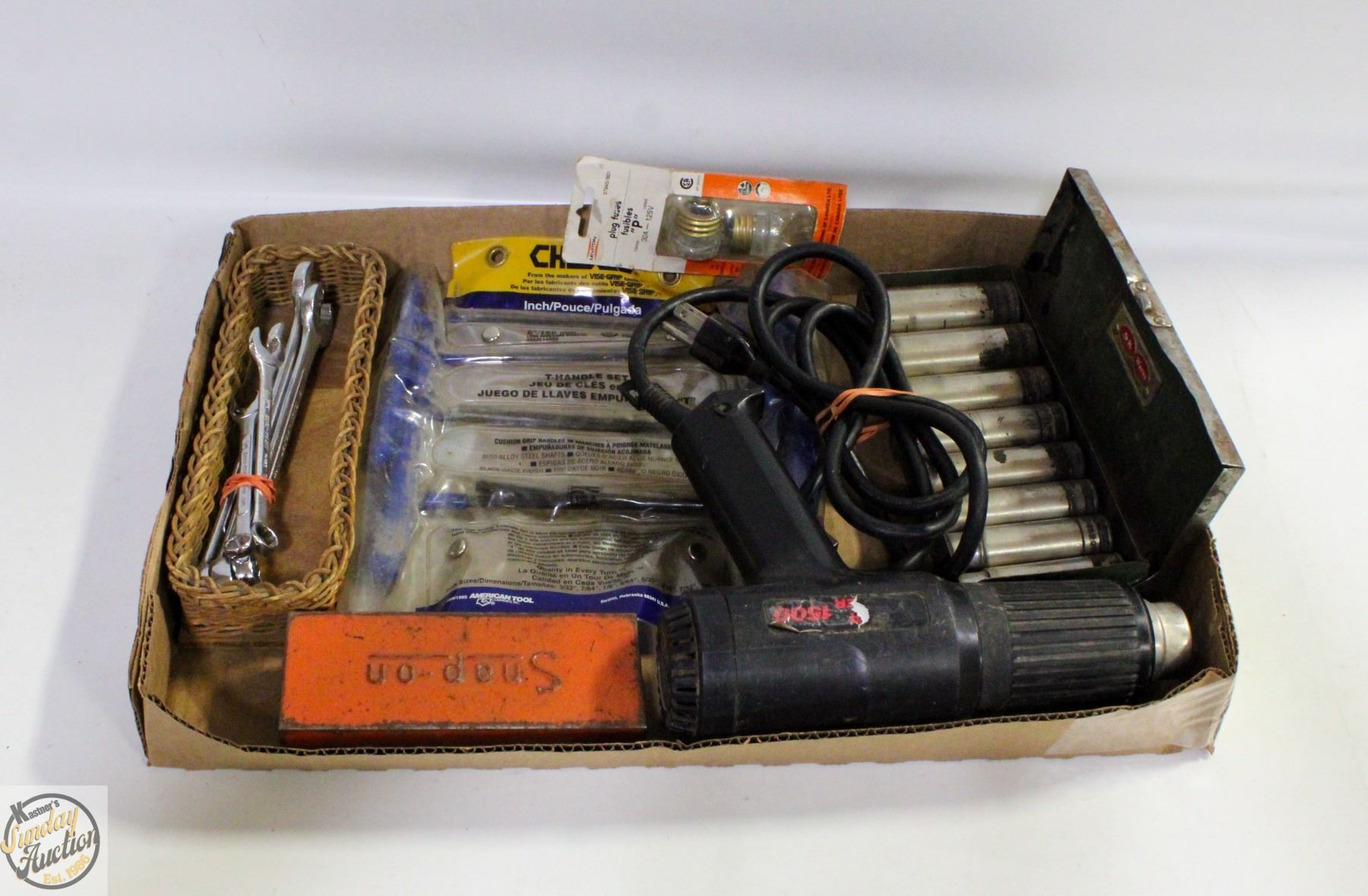 VINTAGE SNAP-ON CASE WITH BITS, CHESCO T-HANDLE SET, SUPERSTRIPPER 1500 (WORKS), 5 WRENCHES: V-OPEN END RATCHET & MORE **ALL ITEMS MUST BE REMOVED BY 5PM SATURDAY, NOVEMBER 15TH 2025. ALL REMAINING ITEMS WILL BE SUBJECT TO A $6.00 PER DAY STORAGE CHARGE. ANY ITEMS REMAINING AFTER MONDAY, DECEMBER 1ST 2025 WILL BE CONSIDERED FORFEITED. NO REFUNDS WILL BE ISSUED FOR FORFEITED ITEMS. TO SCHEDULE A PICK UP APPOINTMENT