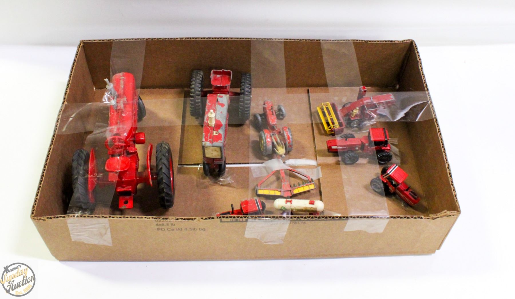 7 TRACTORS: MASSEY FERGUSON COMBINE HARVESTER (ORIGINAL DINKY TOY MADE IN ENGLAND BY LESNEY), INTERNATIONAL HARVESTERS SOME WITH IMPLEMENTS VARIOUS SIZES **ALL ITEMS MUST BE REMOVED BY 5PM SATURDAY, NOVEMBER 15TH 2025. ALL REMAINING ITEMS WILL BE SUBJECT TO A $6.00 PER DAY STORAGE CHARGE. ANY ITEMS REMAINING AFTER MONDAY, DECEMBER 1ST 2025 WILL BE CONSIDERED FORFEITED. NO REFUNDS WILL BE ISSUED FOR FORFEITED ITEMS. TO SCHEDULE A PICK UP APPOINTMENT