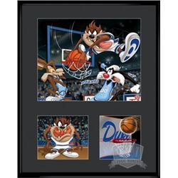 This 16x20 framed lithograph features our favorite Looney Tunes characters. Taz as a Duke players leaps over Wile E. Coyote and Sylvester to slam dun
