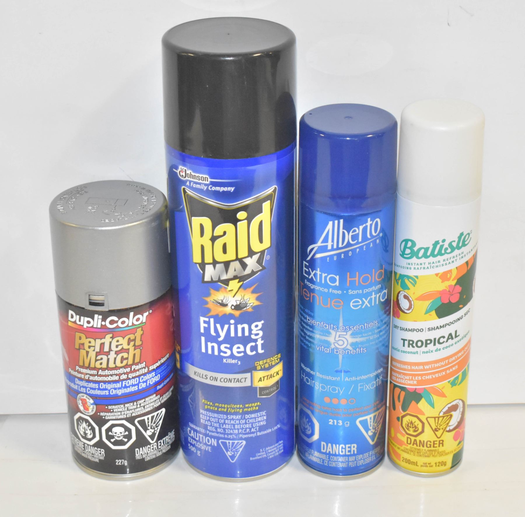 MIXED BAG OF AUTO PAINT, DRY SHAMPOO, RAID AND