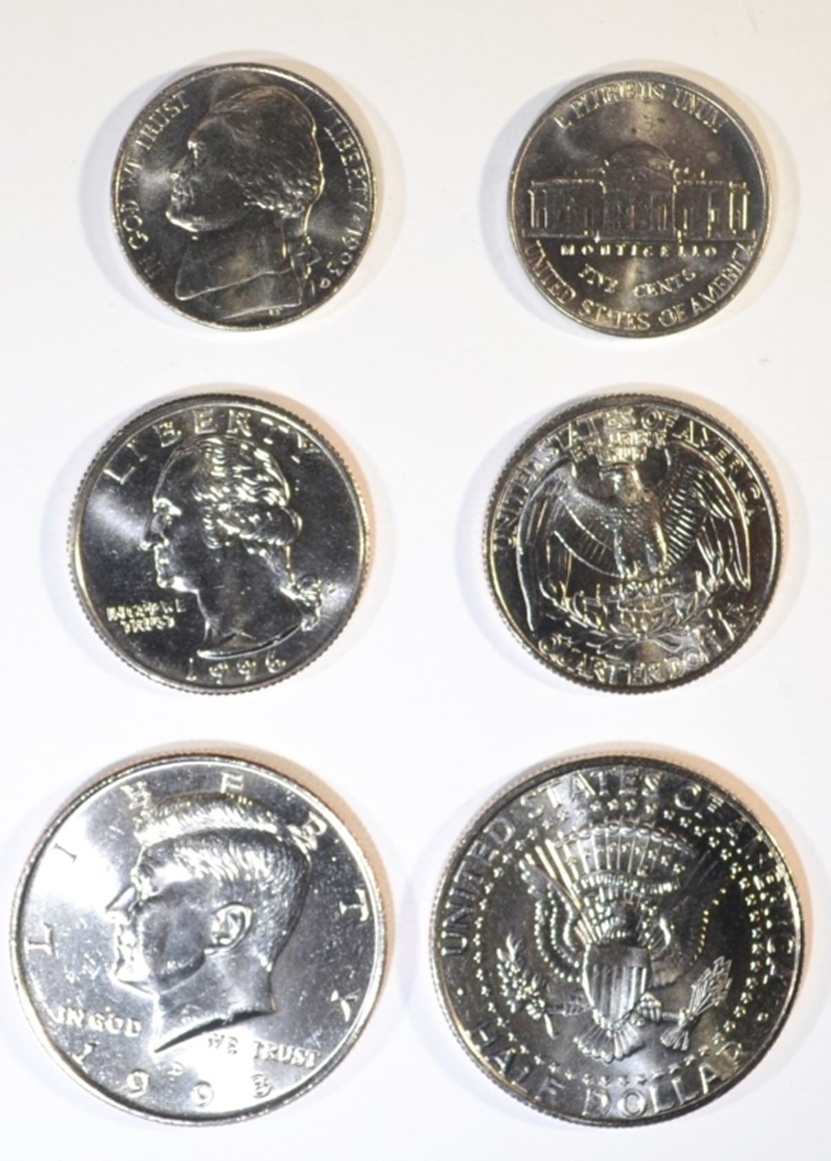 NICKELS- 1993, 1993-D, & 1996; QUARTERS- 1996-D; HALVES- 1998-D ESTIMATE $100 - $110.