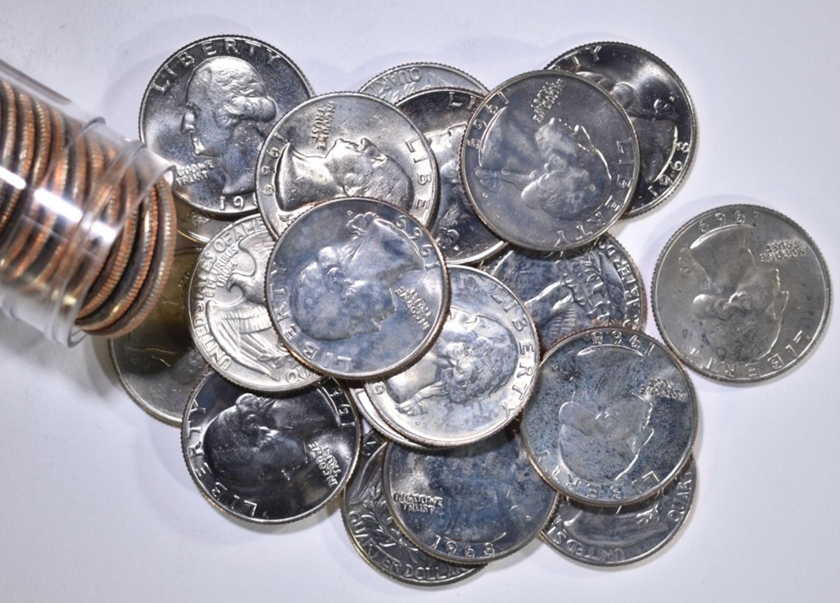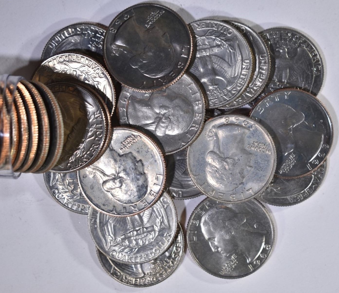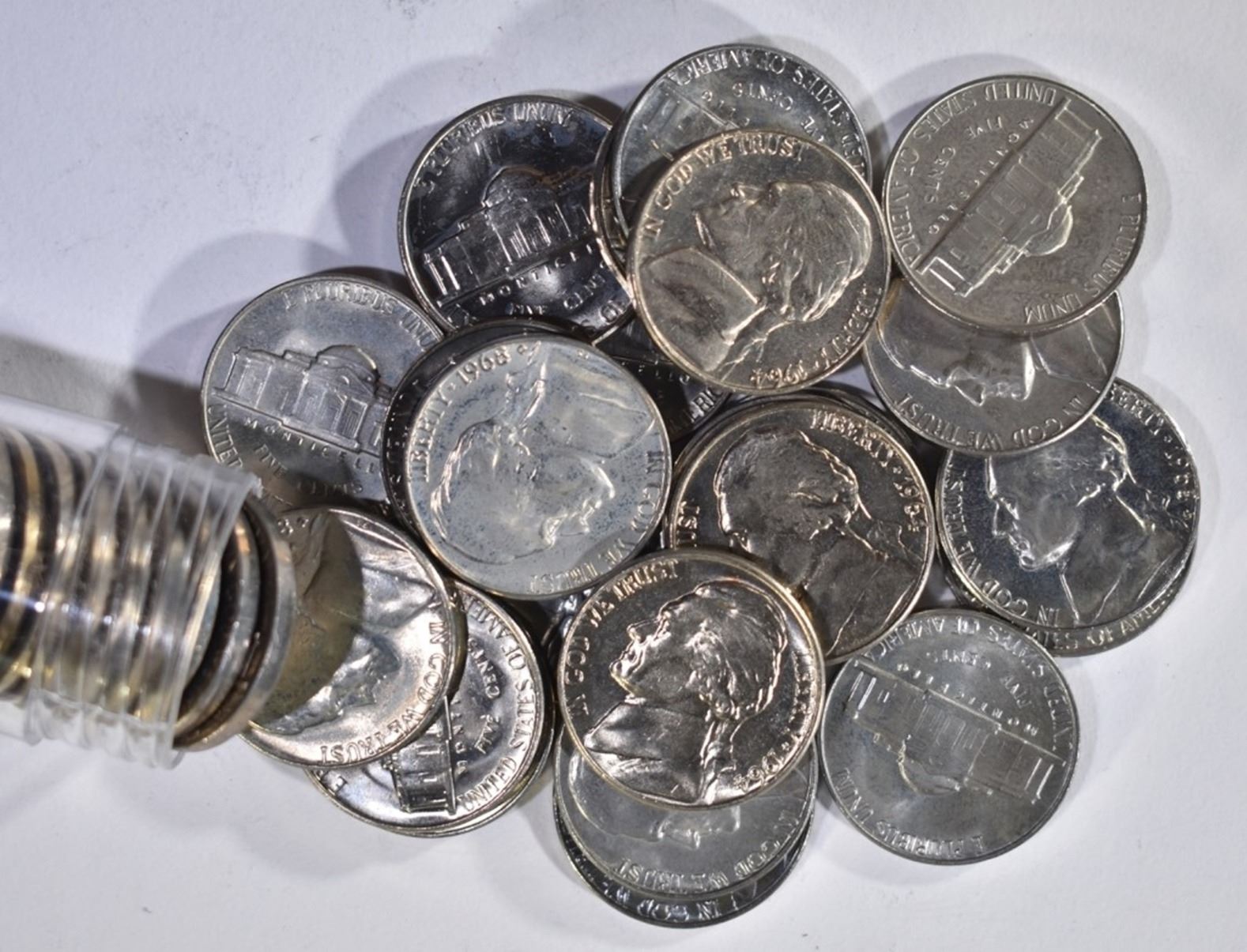 2-ROLLS SMS NICKELS, 56, 61, 2-66 NICKEL ROLLS & 2 ROLLS MIXED DATE WASHINGTON QUARTERS-MOSTLY 1968 & 69 ESTIMATE $120 - $140.