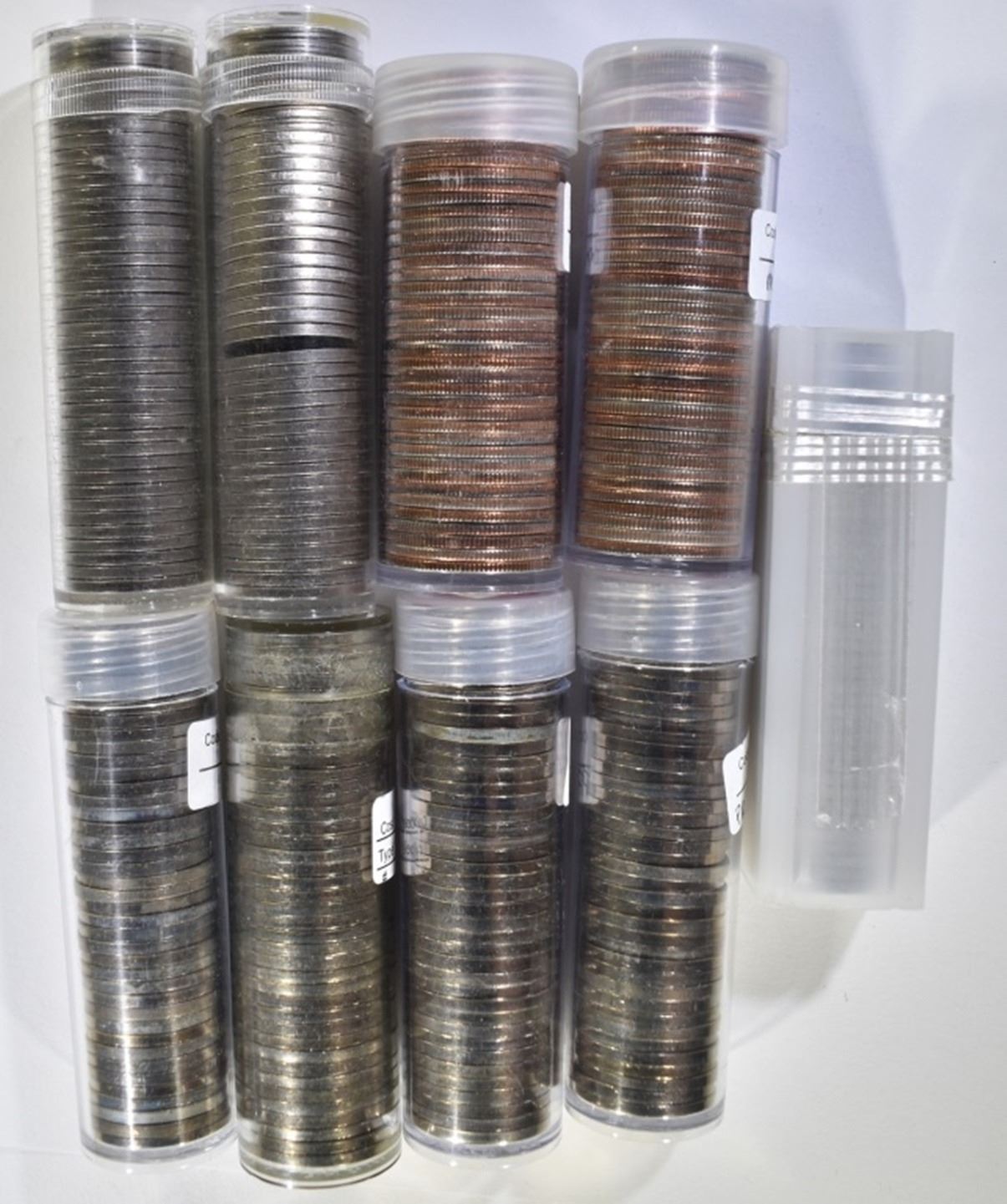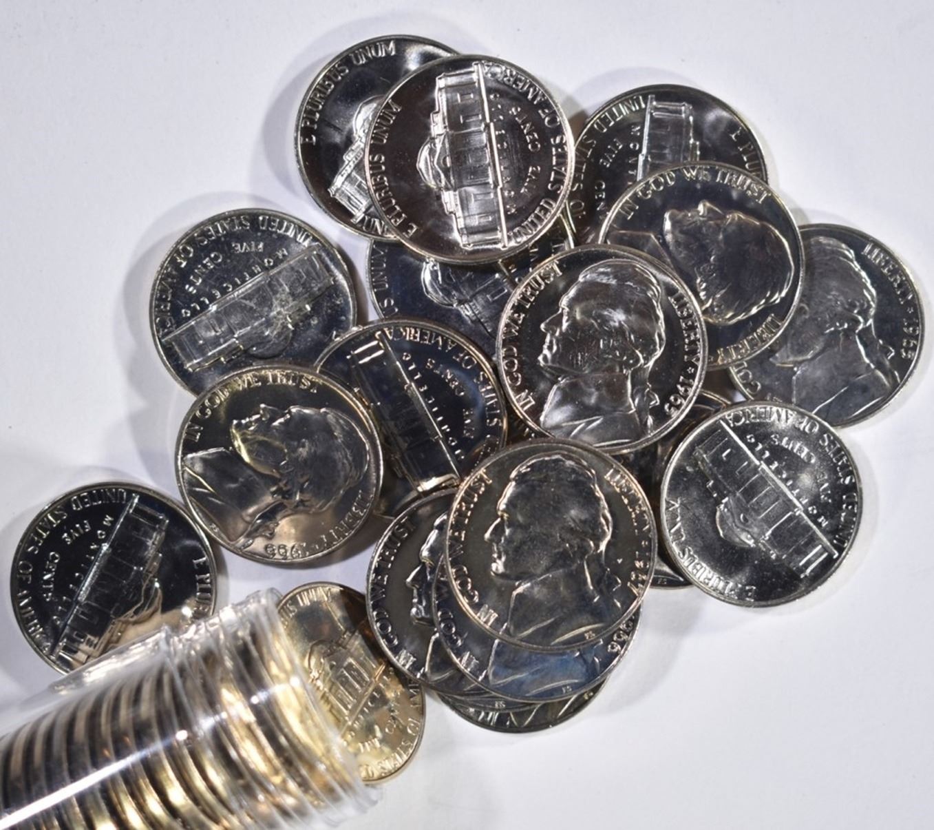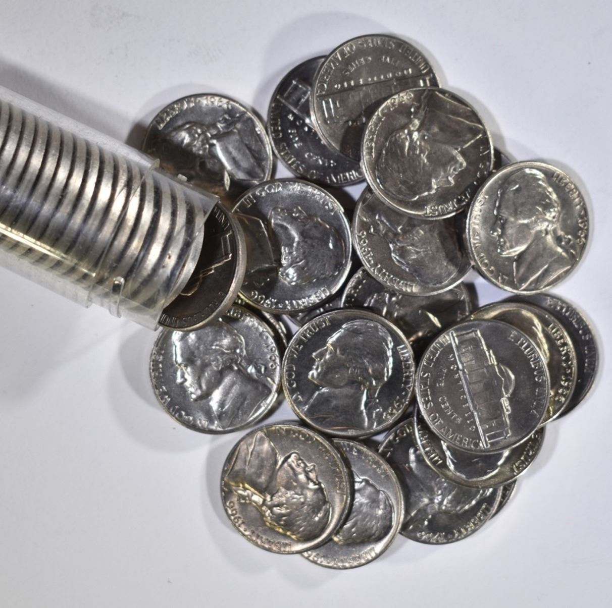 2-ROLLS SMS NICKELS, 56, 61, 2-66 NICKEL ROLLS & 2 ROLLS MIXED DATE WASHINGTON QUARTERS-MOSTLY 1968 & 69 ESTIMATE $120 - $140.