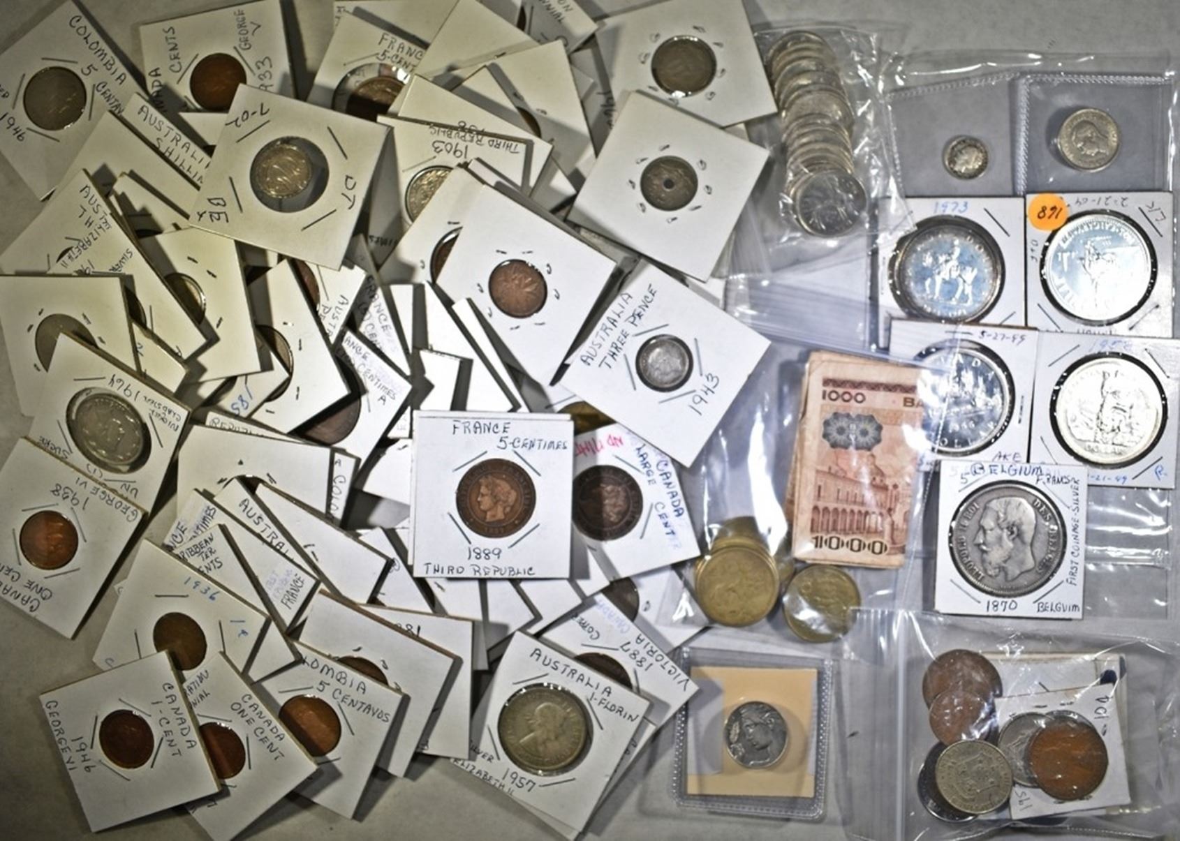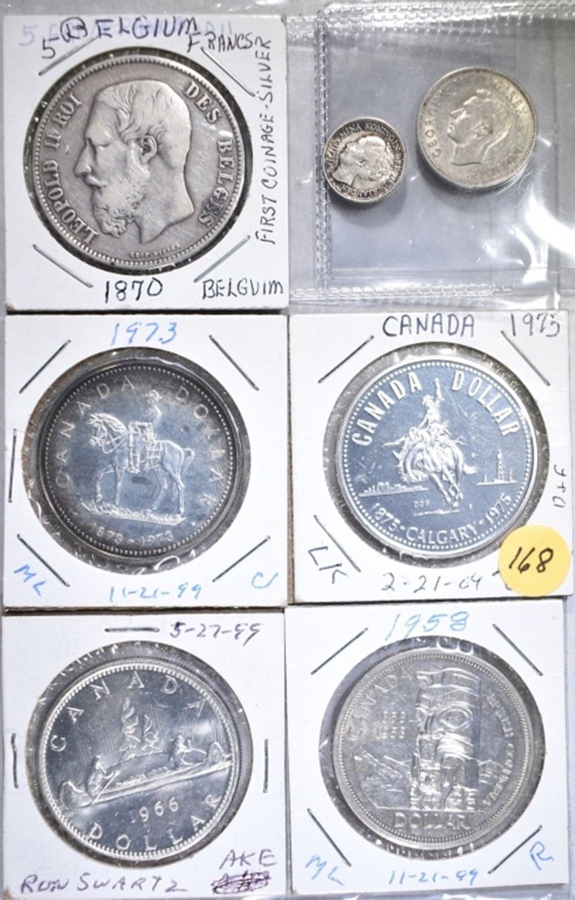 INCLUDES SILVER DOLLARS FROM CANADA & BELGIUM. ESTIMATE $125 - $150.