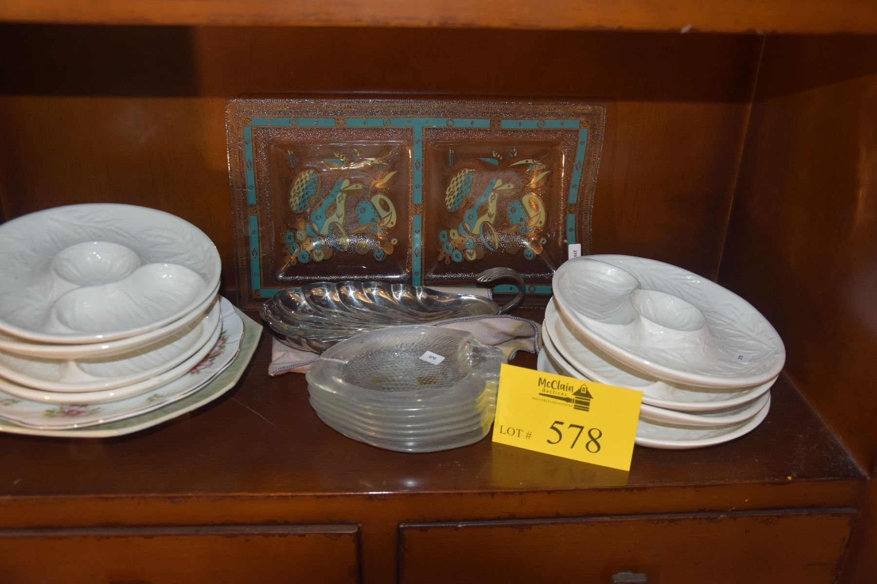 MIXED LOT: ARTICHOKE PLATES, FISH PLATES, SERVING TRAY, ETC.