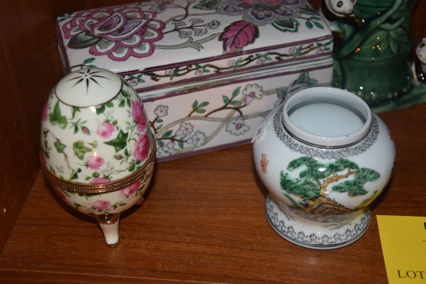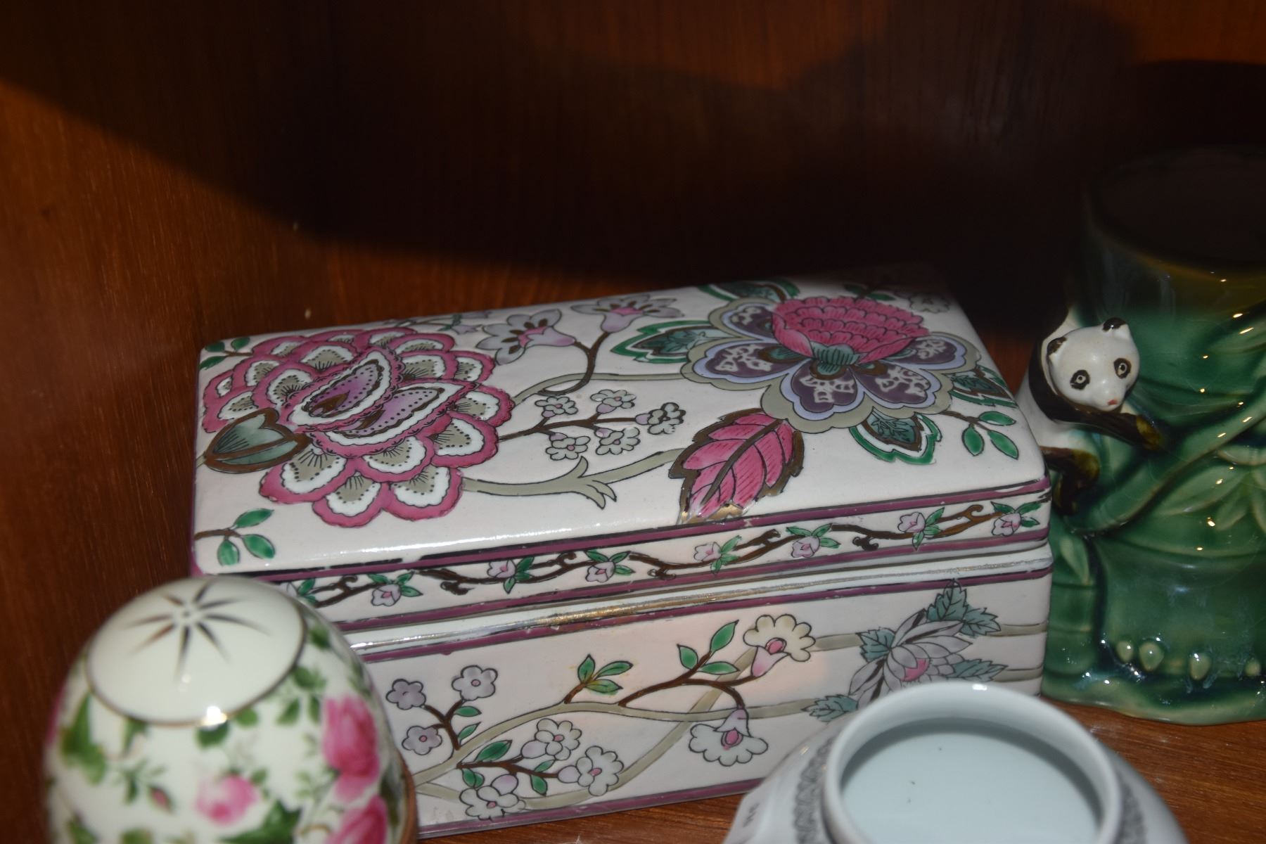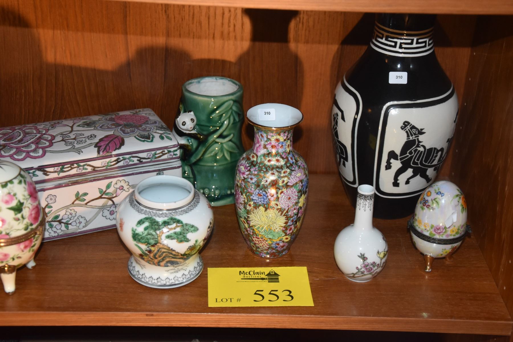 MIXED LOT: ASSORTED VASES, BOX, PORCELAIN EGGS, ETC. (8 PCS)