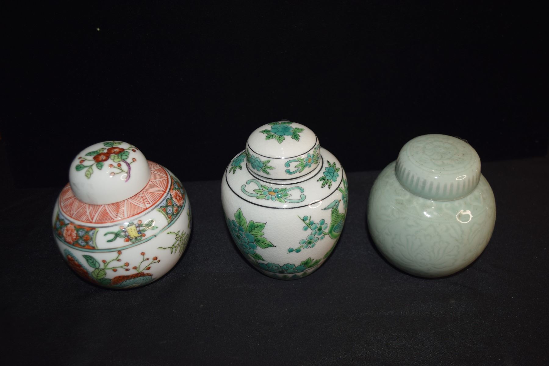 MIXED LOT: CHINESE GINGER JARS & CELADON CACHE POT (6 PCS)