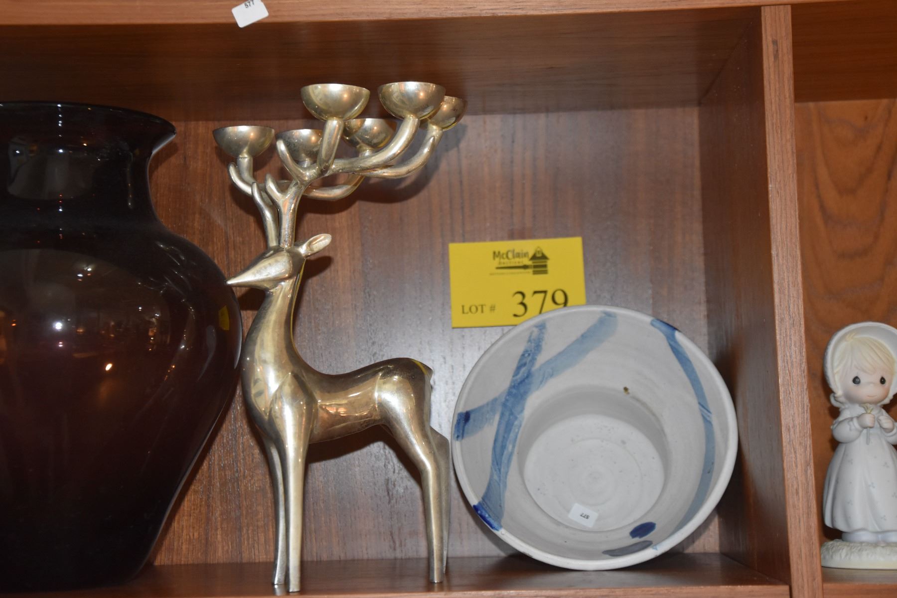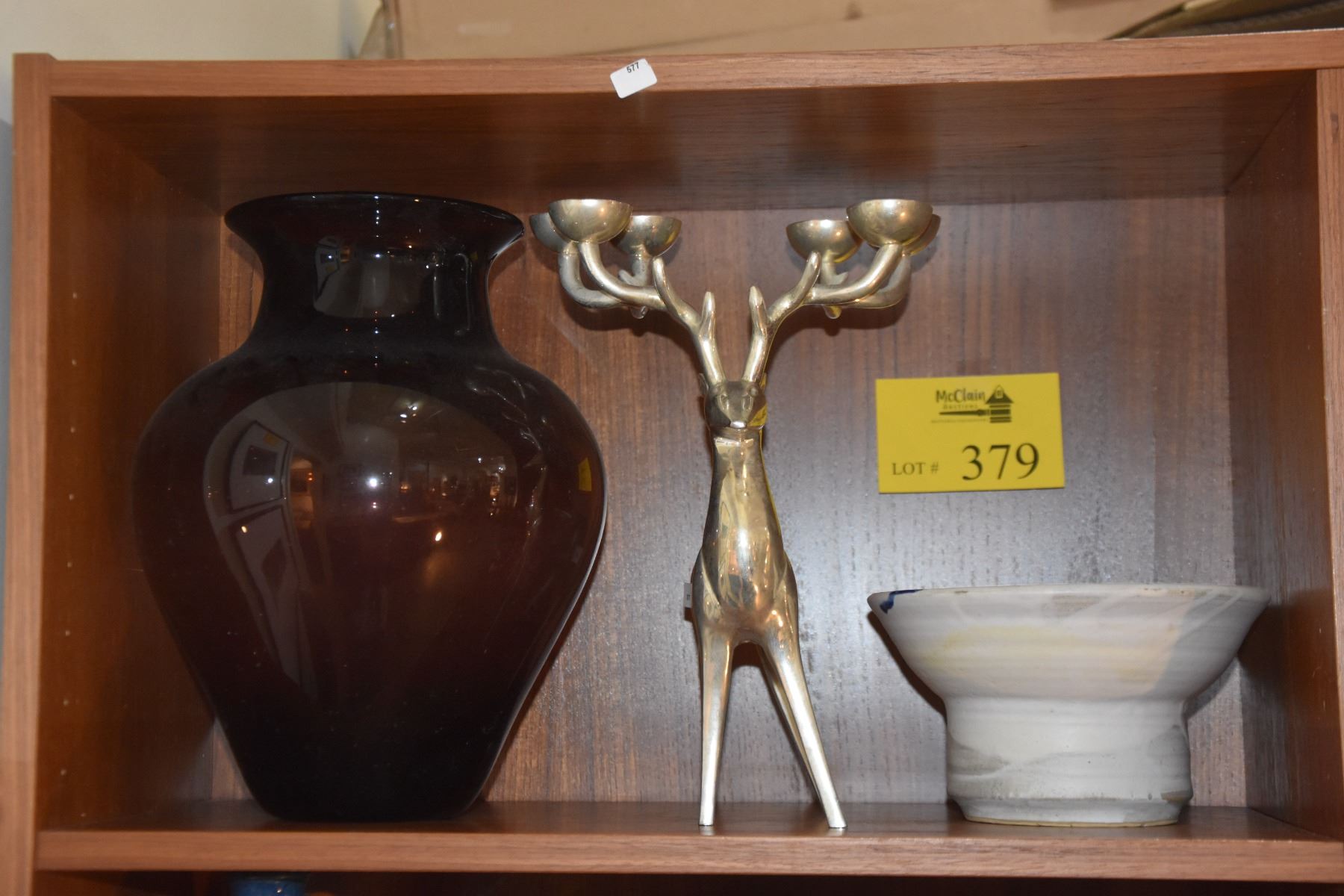 MIXED LOT: GLASS VASE, REINDEER CANDLE HOLDER & CERAMIC BOWL (3 PC)