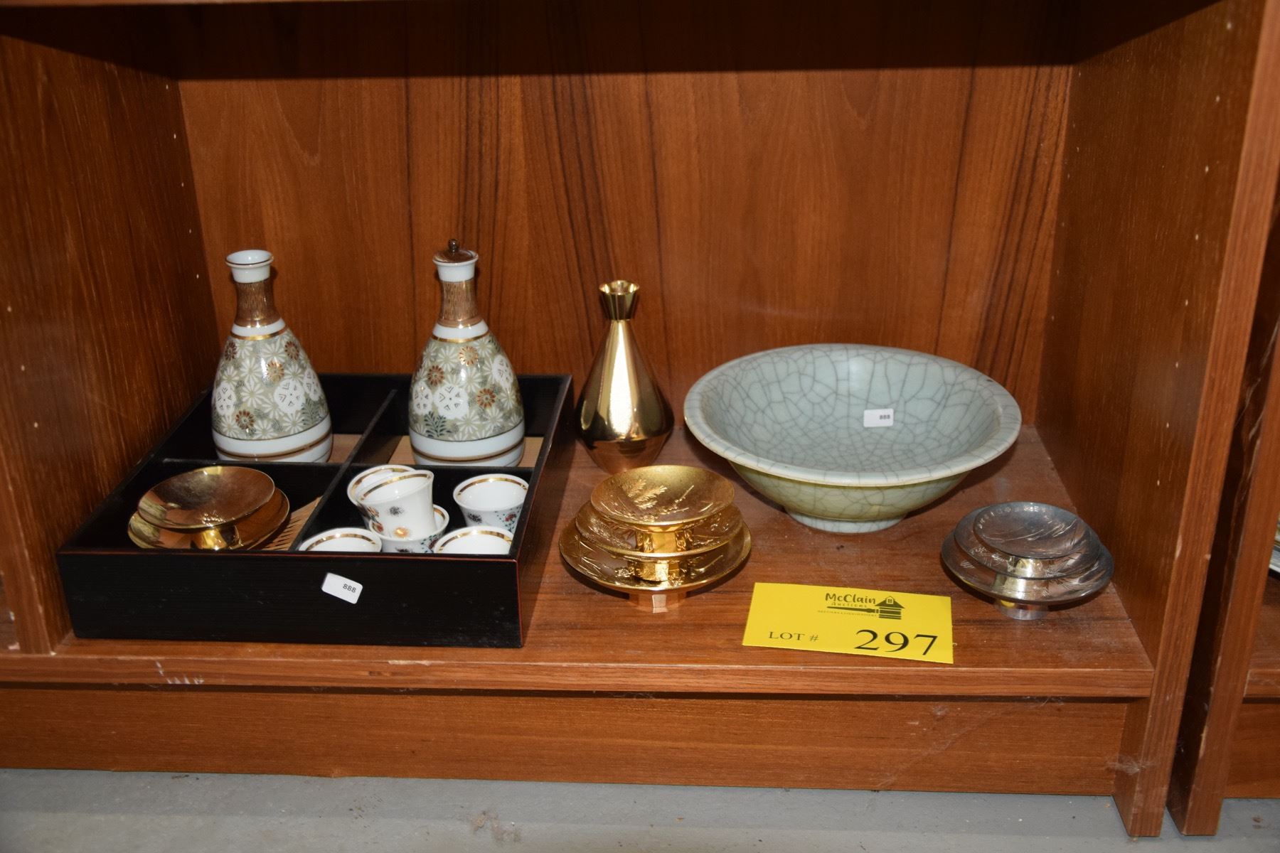 MIXED LOT: JAPANESE SAKE SETS & CUPS & CHINESE BOWL (1 SET IS SILVER) (18 PCS)