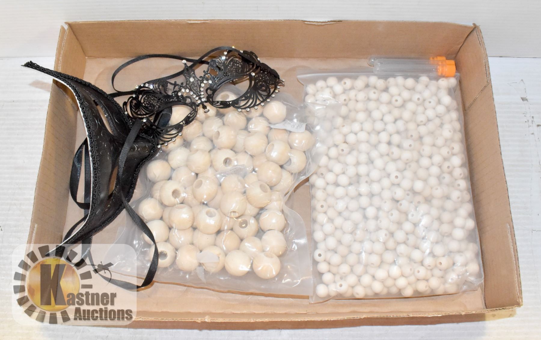 MIXED LOT OF BEADS SEWING NEEDLES, MASQUERADE MASK