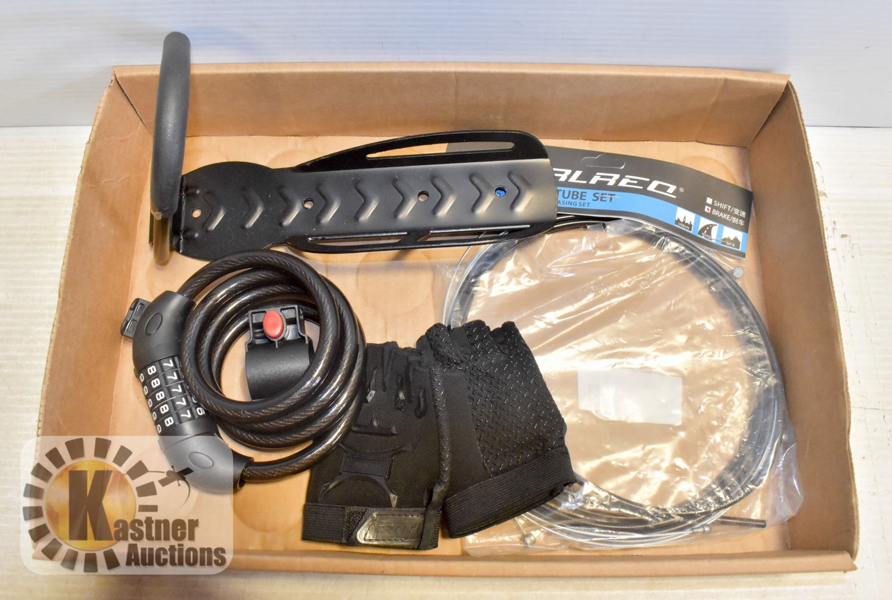 MIXED LOT OF BIKE PARTS INCLUDING GLOVES, LOCK
