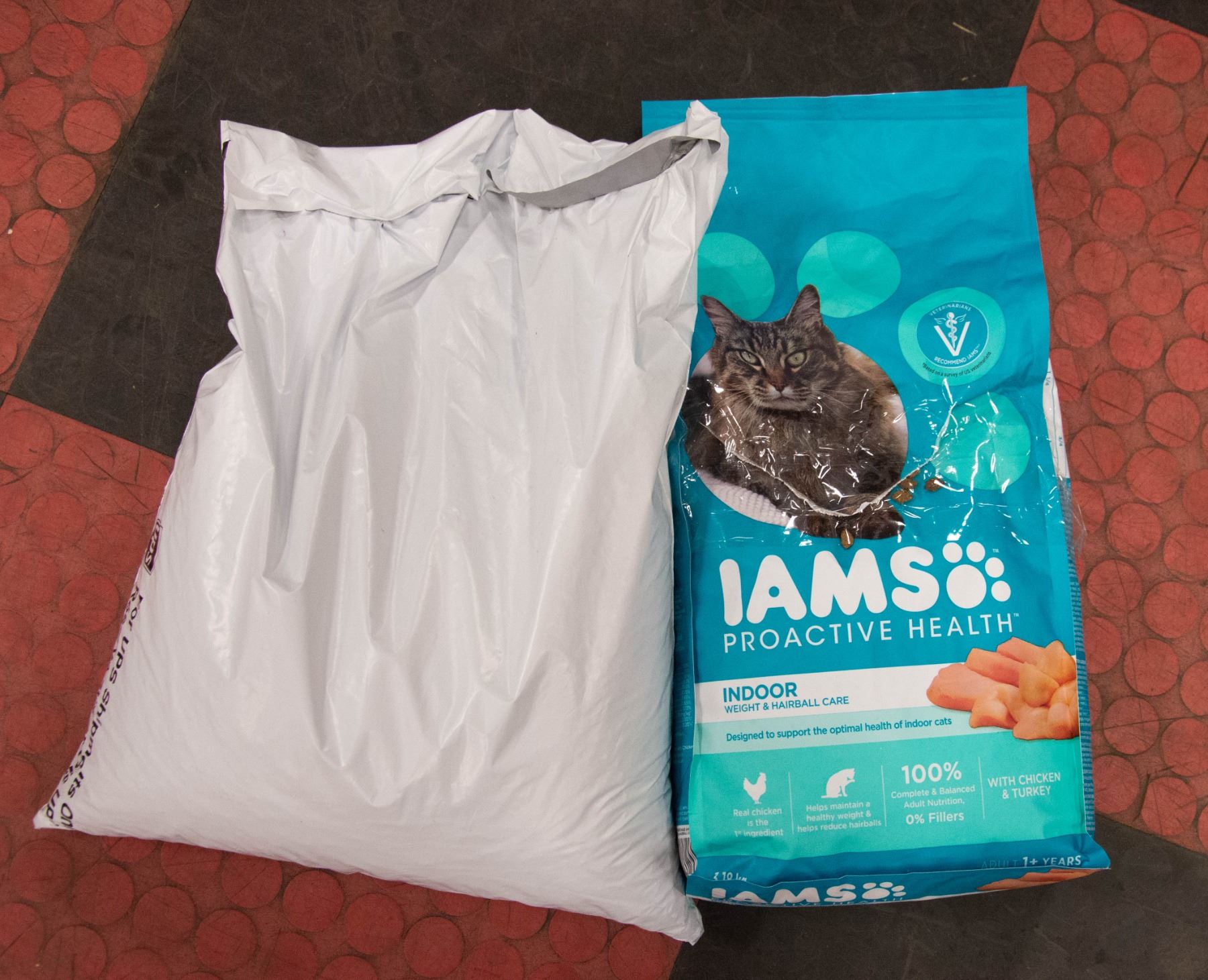 MIXED LOT OF CAT FOOD, 2 BAGS, PACKAGE DAMAGED