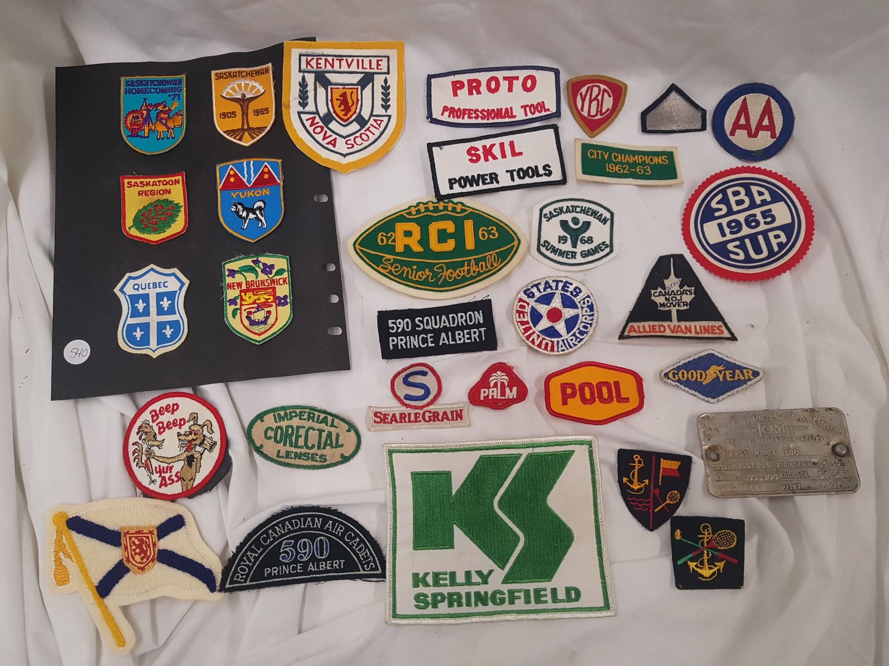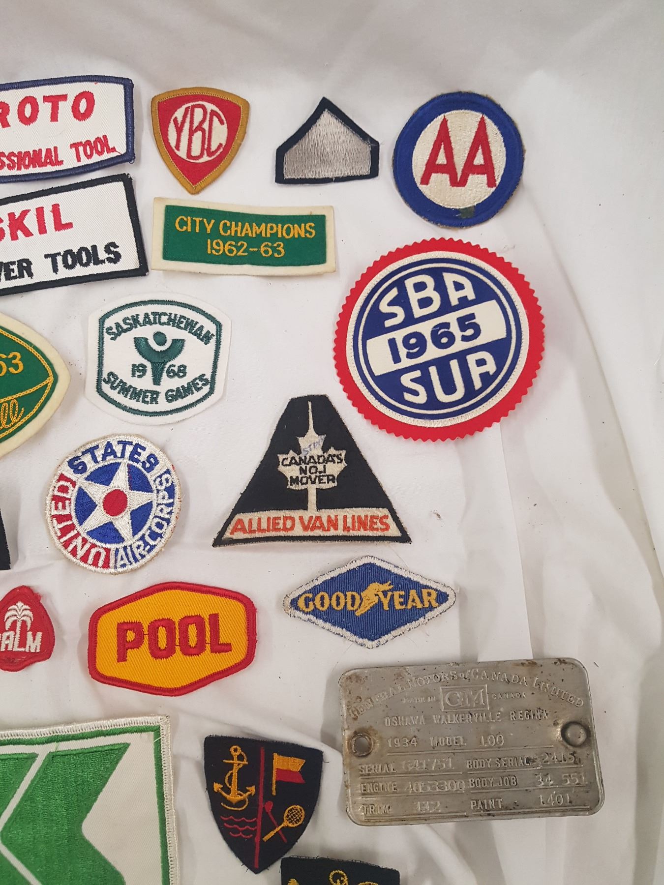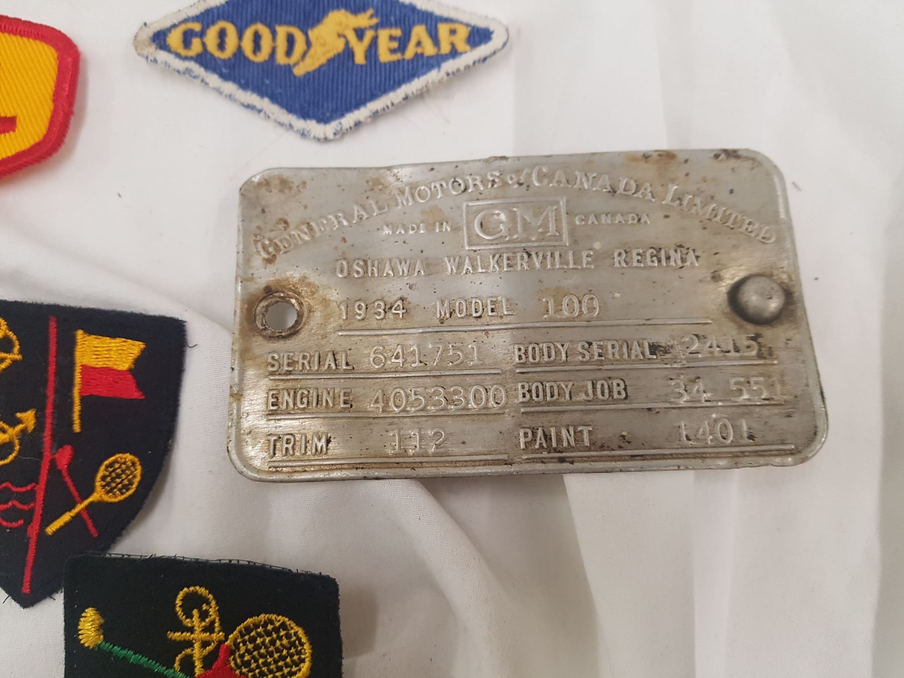 MIXED LOT OF VINTAGE PATCHES AND 1934 CAR TAG