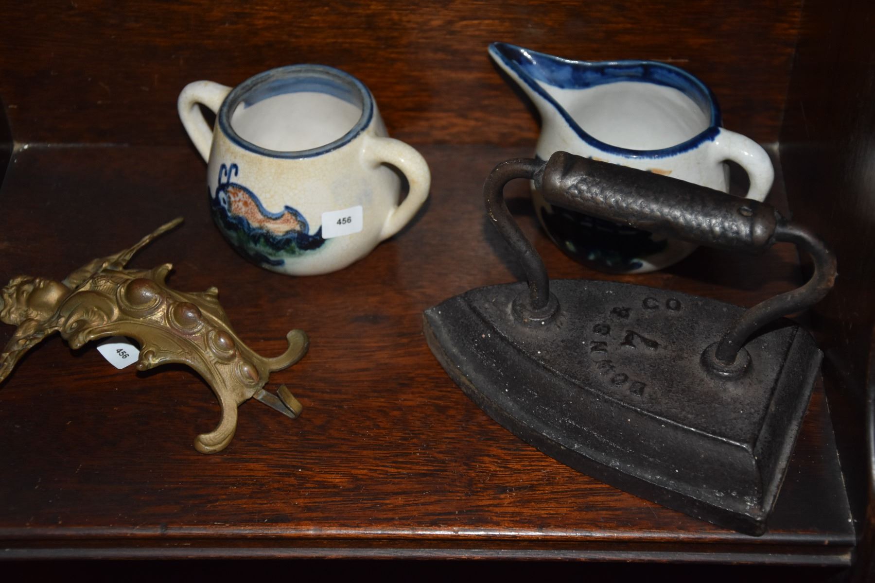 MIXED LOT: POCKET VASE, MIRROR, TOOLS, IRON, COAT HOOK, CREAM & SUGAR (8 PCS)