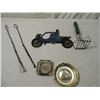 GREAT MIXED LOT, PRIMITIVES, ASHTRAYS, AND MORE, AS SHOWN.