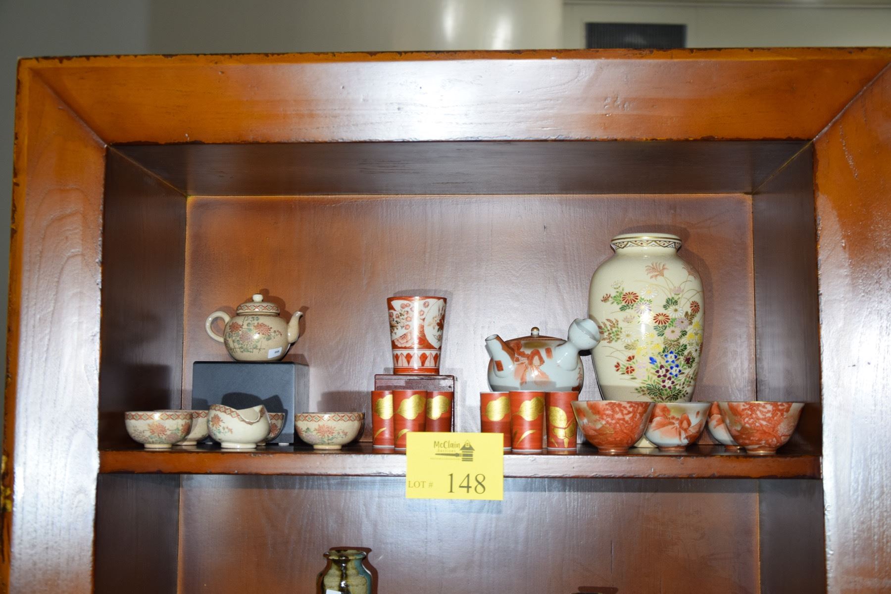 MIXED LOT: SATSUMA TEA SET & VASE, KUTANI TEA POT & MISC. CUPS (20 PCS)