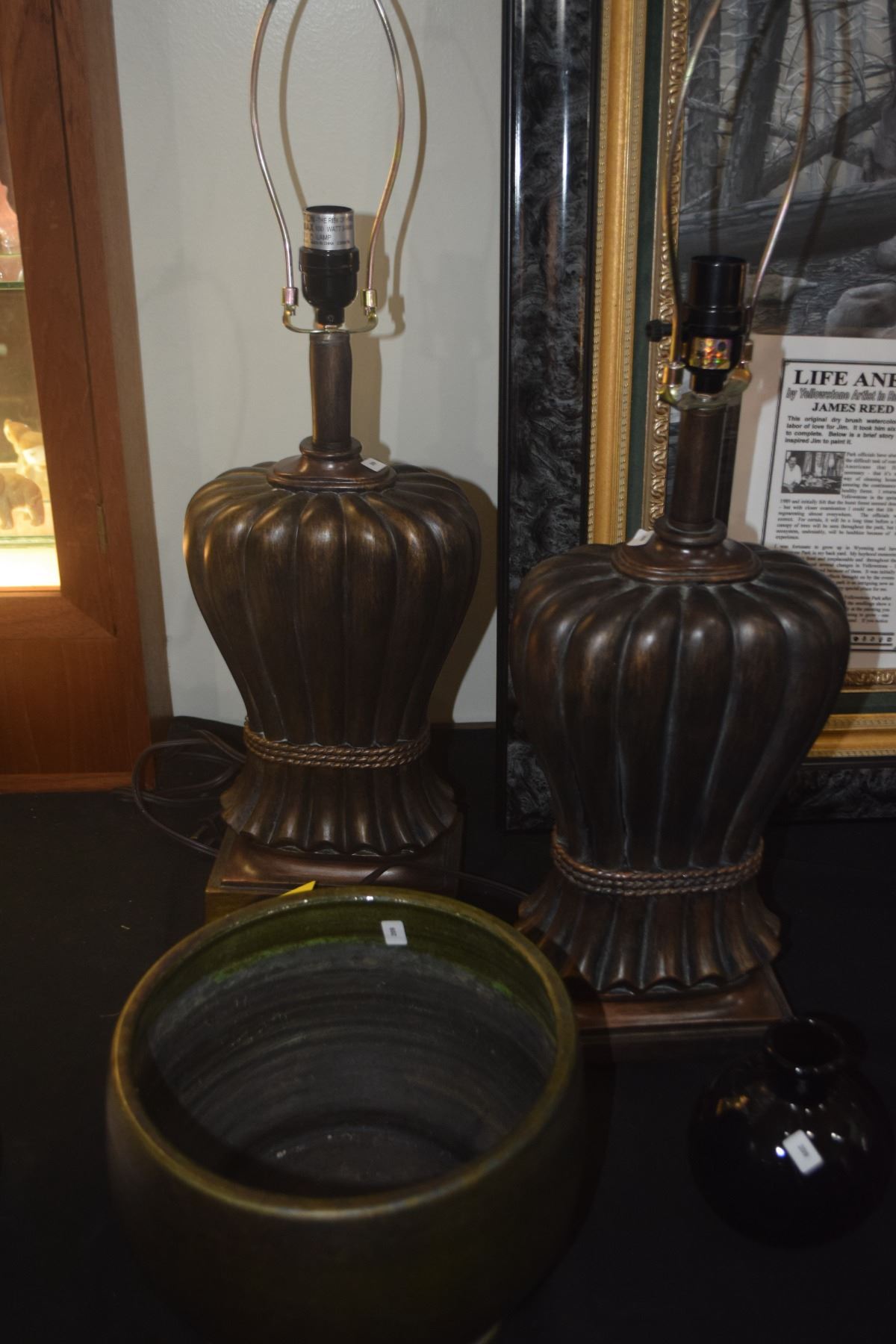 MIXED LOT: TABLE LAMPS (NO SHADES), PLANTER & VASE (4 PCS)