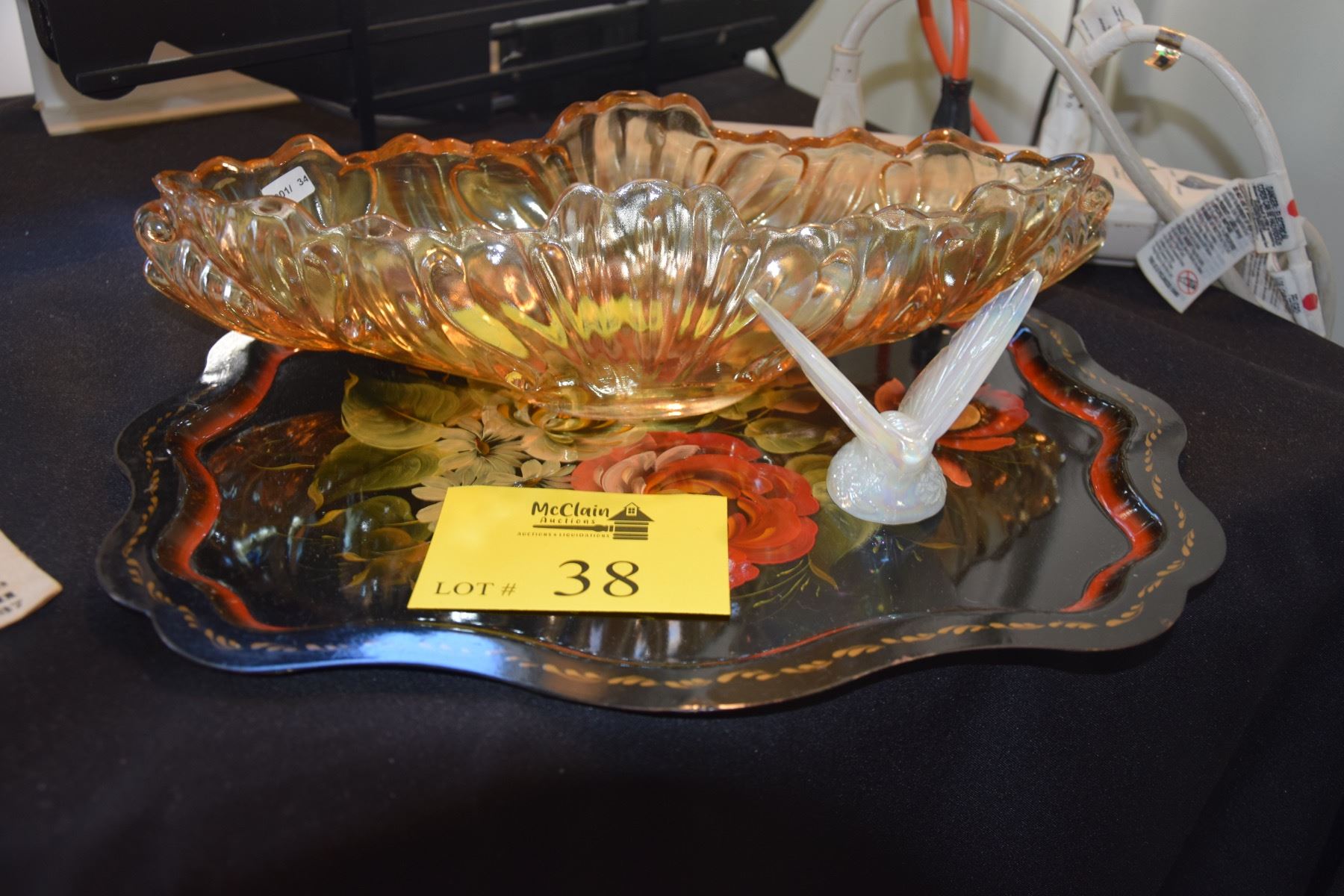 MIXED LOT: VASE, TRAY & GLASS BUTTERFLY (3 PCS)